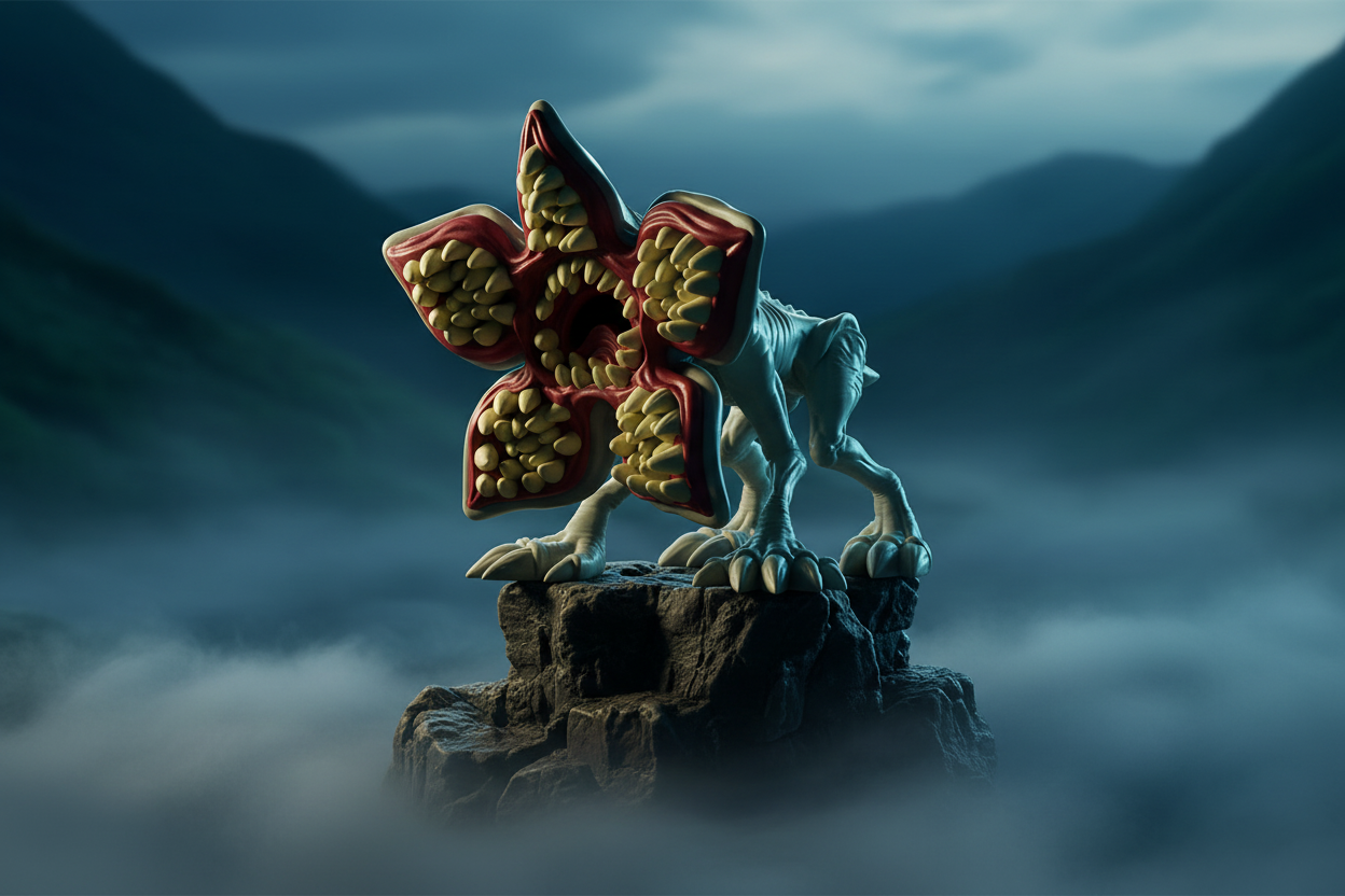 Rampant de manière menaçante dans Youtooz à quatre pattes et mesurant 3 pouces de hauteur, sa tête s'ouvre en 5 sections de diamant pour ressembler à une fleur rose charnue qui est couverte d'une série de dents sales et acérées. Avec son corps squelettique penché en avant et sa peau pâle s'accrochant étroitement à sa forme émaciée, de fines veines coulent à l'arrière de sa tête alors que leurs griffes acérées sont toujours prêtes à porter un coup de grâce. L'extérieur de son emballage voit un trio de Demodogs ramper de manière inquiétante à travers un tunnel sombre, tandis que l'intérieur est un goop collant noir qui court en vrilles sur un fond noir. La pochette de protection recrée l'Upside Down avec une maison délabrée et des arbres tordus, car sa silhouette peut être vue à travers la grande fenêtre d'affichage transparente à l'avant. Cet objet de collection est livré dans un manchon extérieur mat, gaufré et protecteur et un protecteur en plastique de taille personnalisée pour une protection maximale pendant l'expédition.