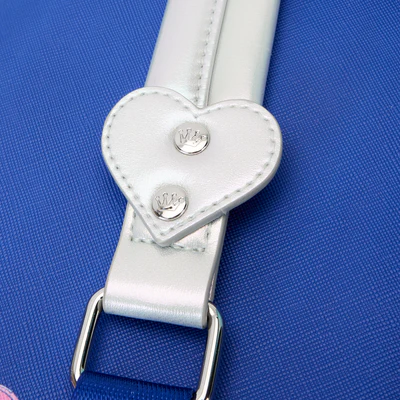 Are you smitten by magical stories? Let yourself be drawn to our Loungefly Disney Princess Manga Style Mini Backpack. This royal blue backpack features several Disney Princess characters printed in a manga style. On the front, a die-cut layer displays manga-style images of Disney's Cinderella, Tiana and Snow White, all wide-eyed in wonder, surrounded by sparkling images of stars and printed hearts. Objects associated with each Disney Princess also appear, including a cottage, a glass slipper and the candlestick with silverware that Ariel finds in the grotto. Just behind this die-cut layer, you'll find a hidden zippered pocket to secure small items during your travels. Above the die-cut layer, you'll find two more Disney Princess characters: Disney's Belle, who is holding a book, and Ariel. More images of glittering stars are printed, as well as the enchanted rose inside a glass dome and a cupcake decorated in the colors of Tiana's dress. The side panels feature Disney's Jaq and Gus on a spool of thread and a ball of yarn. Colorful hearts and glittering stars in silver foil surround them. On the other panel, Flounder also appears amidst the glittering hearts and stars. On the back, the following Disney Princess characters make a manga-style appearance inside the heart shapes: Ariel, Belle, Tiana, Snow White and Cinderella. A textured pattern, all over the bag, gives the prints a more realistic "manga" look. The silver metallic shoulder straps add a complementary pop of color. Carry just what you need for the day and have all sorts of adventures.