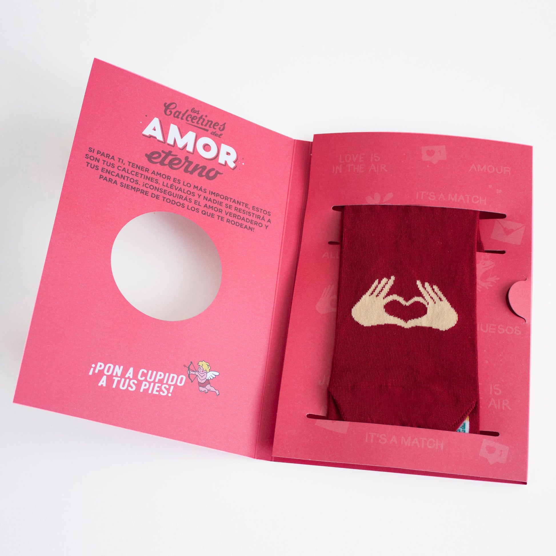 These original socks will attract love in your wake. Put them on and their print with multiple amulets and emojis will invoke the powers of Aphrodite herself: there's Cupid, the daisy leaf, the better half... The ideal gift to wish good luck to your family and friends! Dimensions: 14.5x21cm Materials: 75% cotton, 23% polyamide, 2% elastane They have the OEKO-TEX certificate, which is an international determinant of the highest quality textile products.