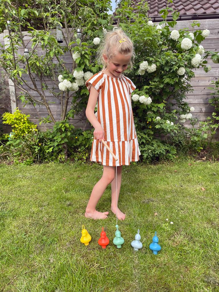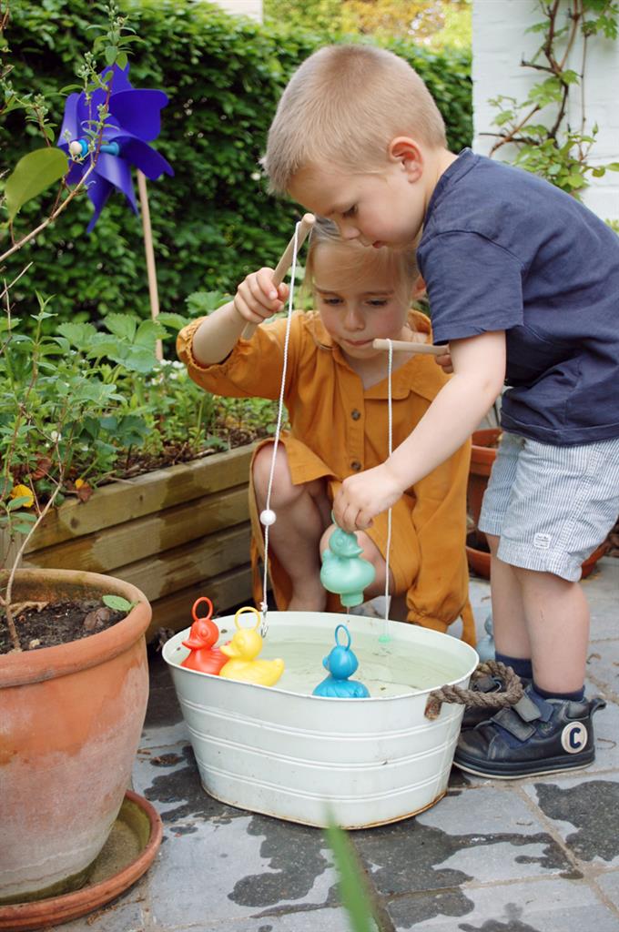 Many remember the childhood trip to Tivoli and the obligatory visit to the duck pond where the ducks sailed in circles. A place where victory was guaranteed when a duck took the bait. Whether the prize is in the bathtub or in the water basin at home is up to each individual, but the magic remains the same with Scratch's duck fishing game, as it was in Tivoli. The set includes six happy ducks, all floating beautifully in the water thanks to the counterweight at the bottom. All ducks have a loop on their heads, making them easy to catch with the included fishing rods.