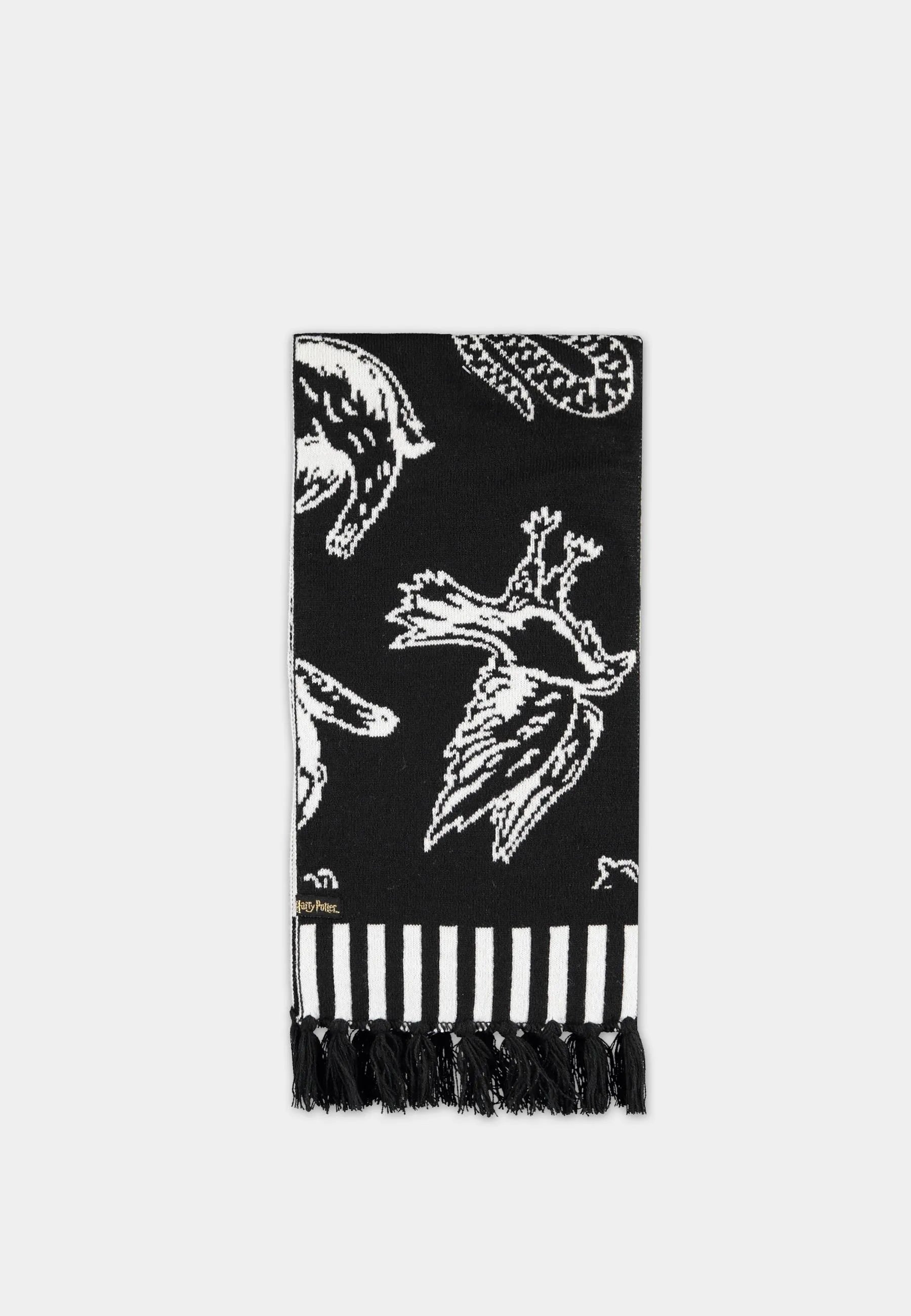 Show your love for Harry Potter loud and clear with this unique intarsia jacquard hat and scarf set. With an embroidered Harry Potter logo on the hat and illustrations of all four Hogwarts houses, you can pretend you're on your way to the Christmas feast in the Great Hall!