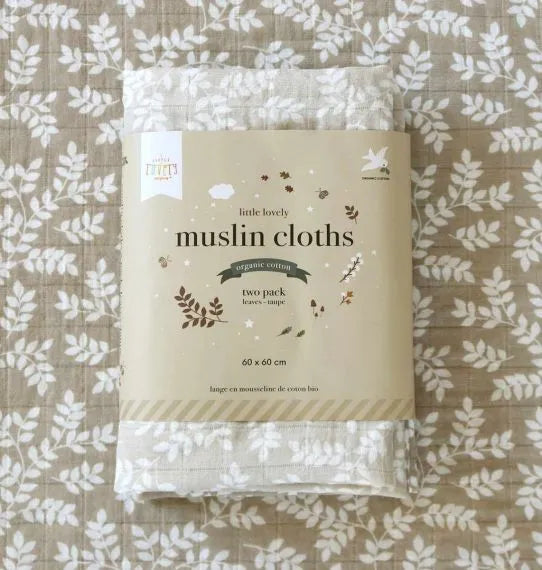 Set of two multi-purpose muslin languages. Made from 100% organic cotton, these soft rags are an essential article for each new parent. Cotton muslin is light, absorbent and breathable, which makes it ideal to use during power, cleaning and bath. These clothes also have the ideal size for travel.