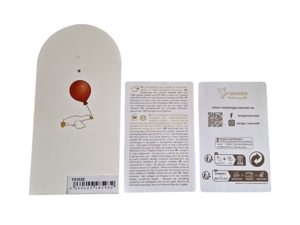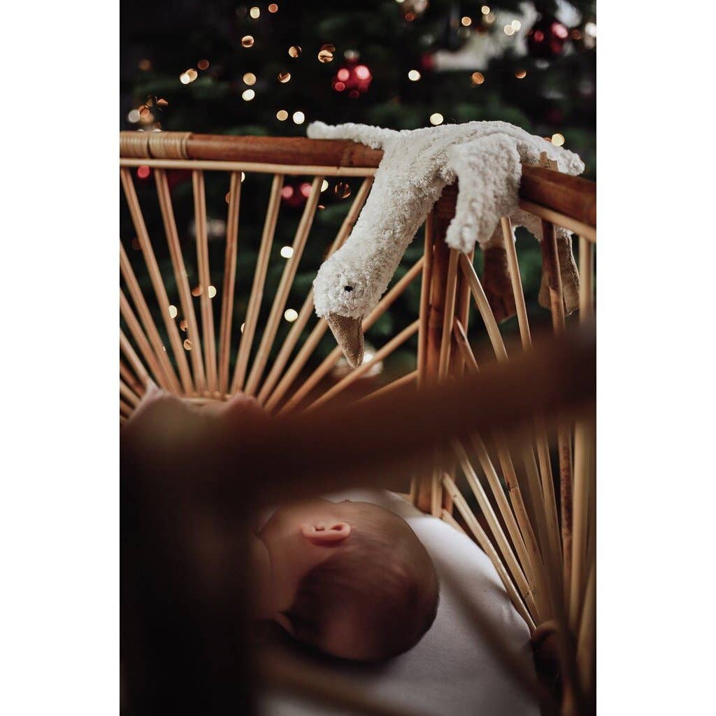 The small white goose-shaped hot water bottle from Senger-Naturwelt is both a cuddly toy and a practical hot water bottle filled with grains. Filled with GOTS-certified German sheep's wool and grains, it provides soothing warmth or refreshing coolness. This durable accessory, made in Europe, appeals to young and old alike, while also adding a charming decorative touch. Ideal for moments of comfort and environmentally friendly use.