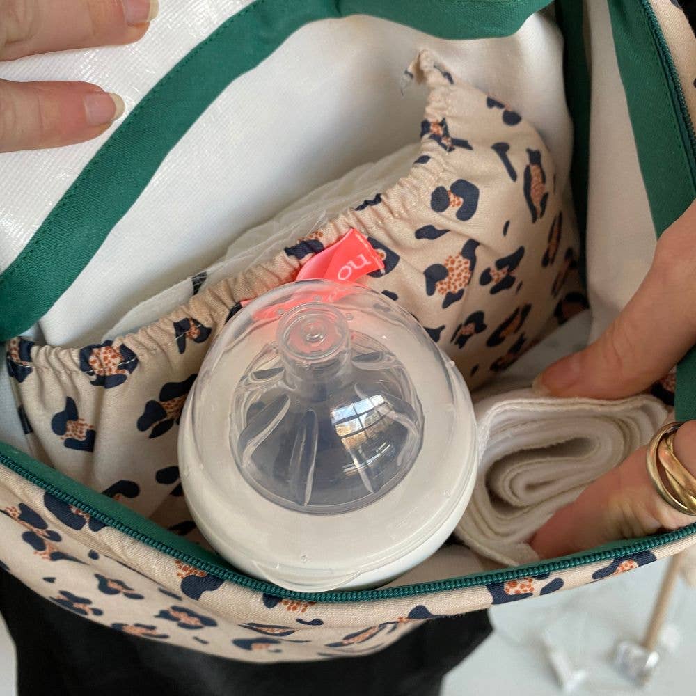 2 - Des poches pour mettre 1 ou 2 couches, des lingettes, une tétine, un élastique pour caler le biberon 210ml...