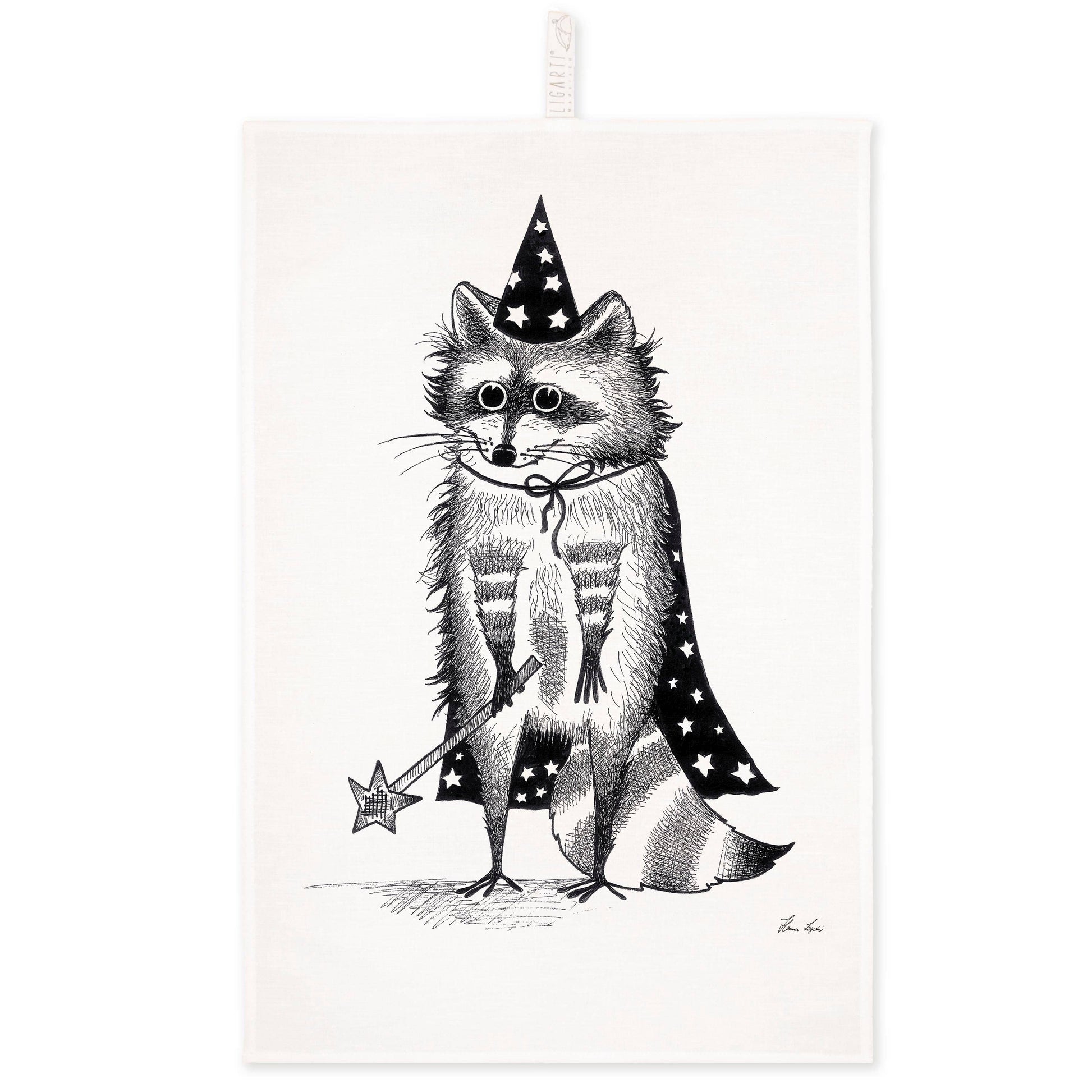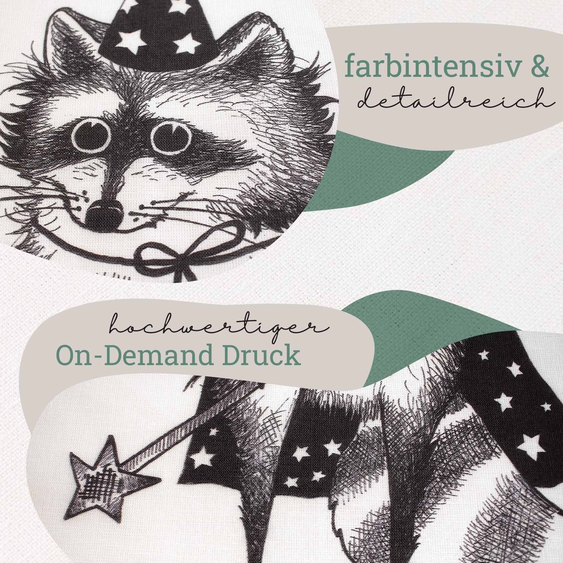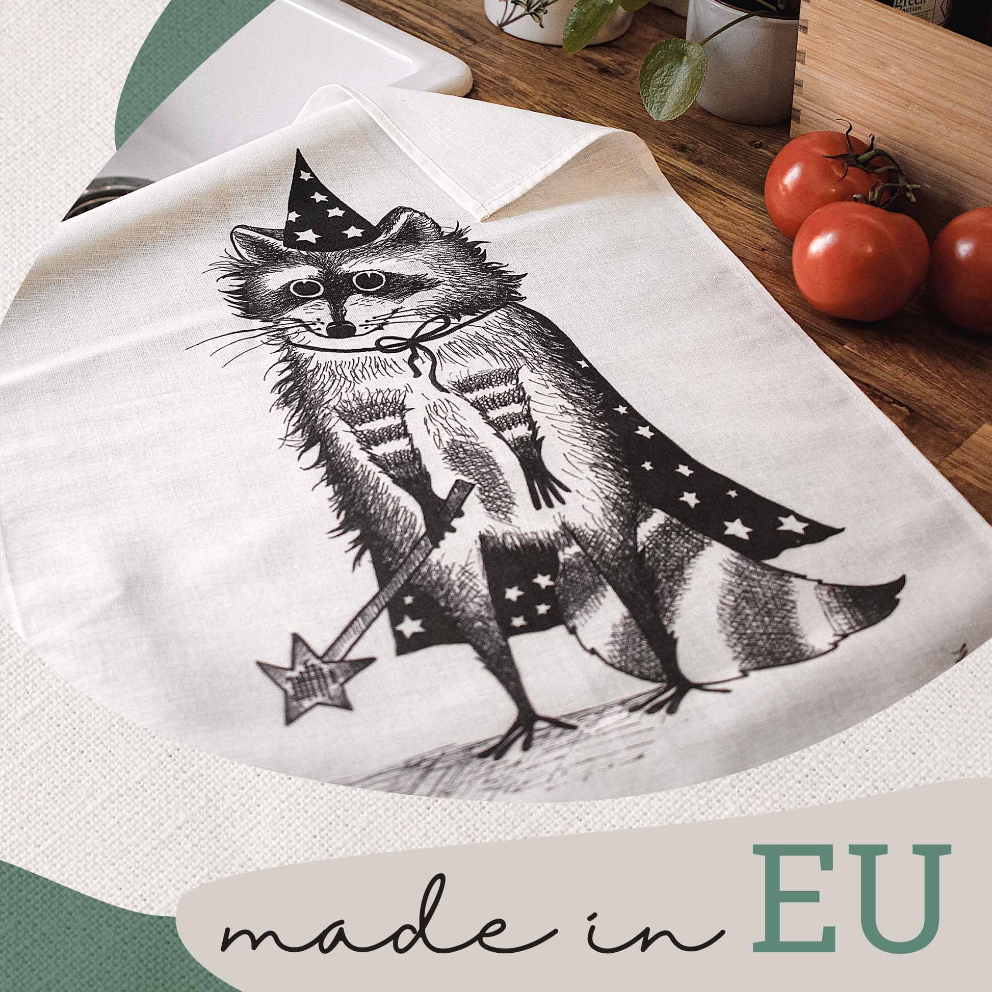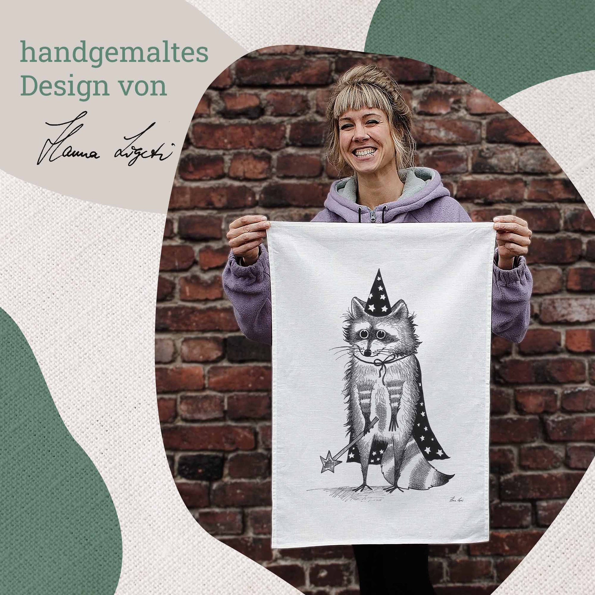Art Up your Kitchenette: Tea towel with "Zaubär" the raccoon