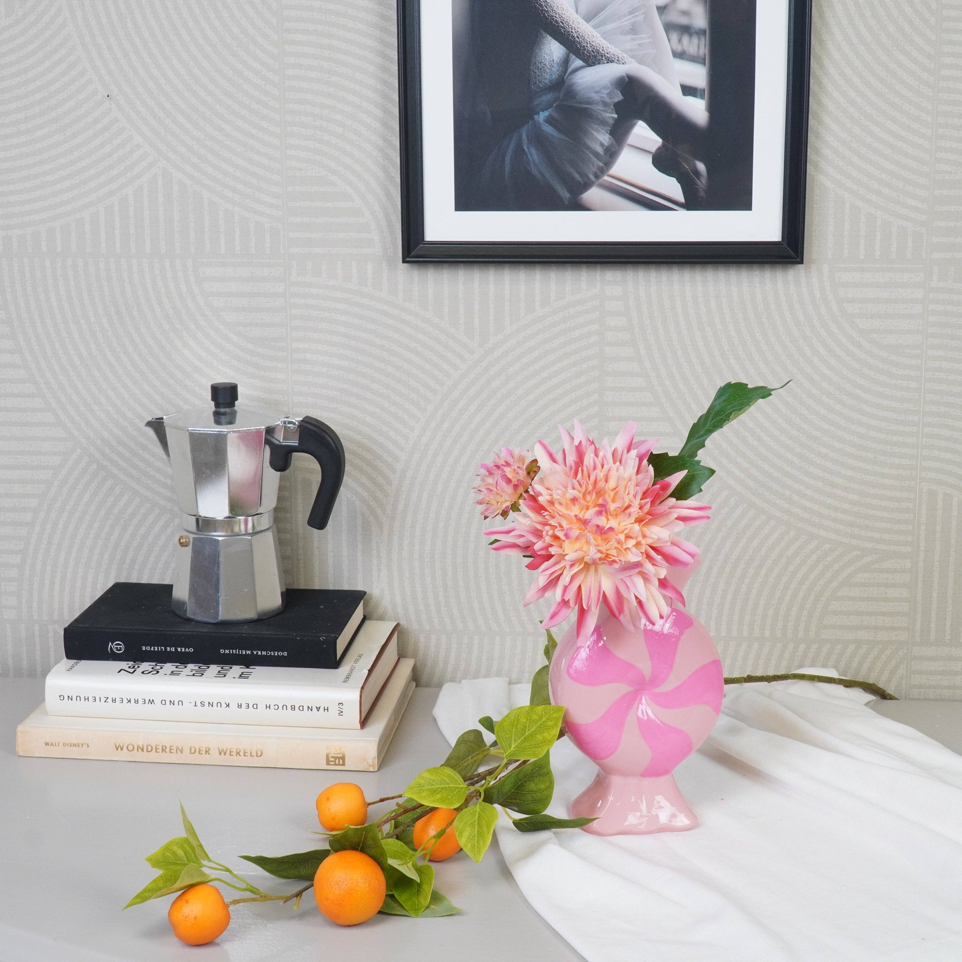 CANDYLICIOUS - Looking for a unique vase to complement your interior? This beautiful ceramic vase from Housevitamin is exactly what you need! With its colorful swirling stripes and dimensions of 12x6.5x20 cm, this candy-colored vase adds a cheerful touch to your home. Let yourself be inspired by the sweet caramel hue and give your flowers a special place with this eye-catcher!