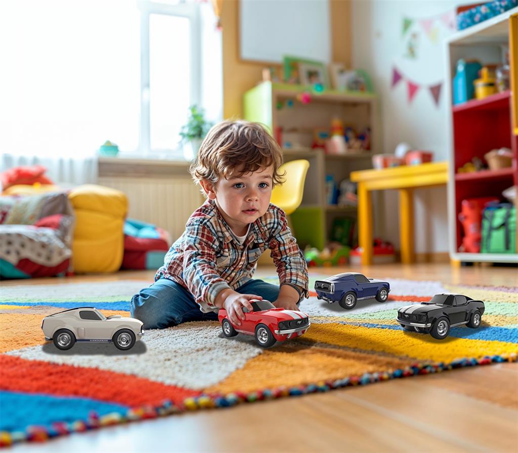 Suitable for children aged 3 and up, this black Ford Mustang Racing Car offers an unforgettable first driving experience. A Mustang as a first car is a waking dream that might make parents jealous! The size of this small toy car is ideal for easy handling by little hands, encouraging imagination and role play.