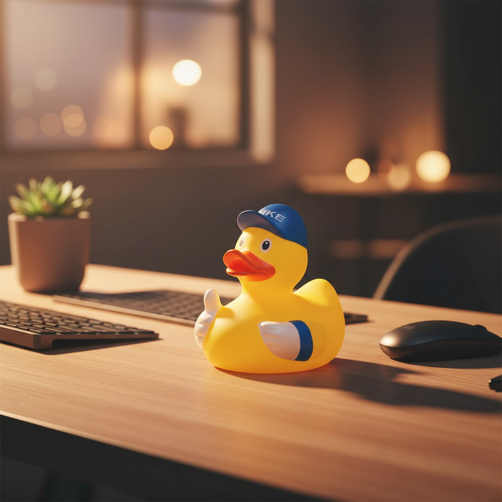 Esto atrae a nuestro pato como mucho. Con su pulgar levantado, ella claramente dice que realmente ama algo. Con este pato de goma, también puedes expresar sin palabras que realmente te gusta algo o alguien. Este es el regalo perfecto para pequeñas expresiones de amor y para dar a luz a alguien.
