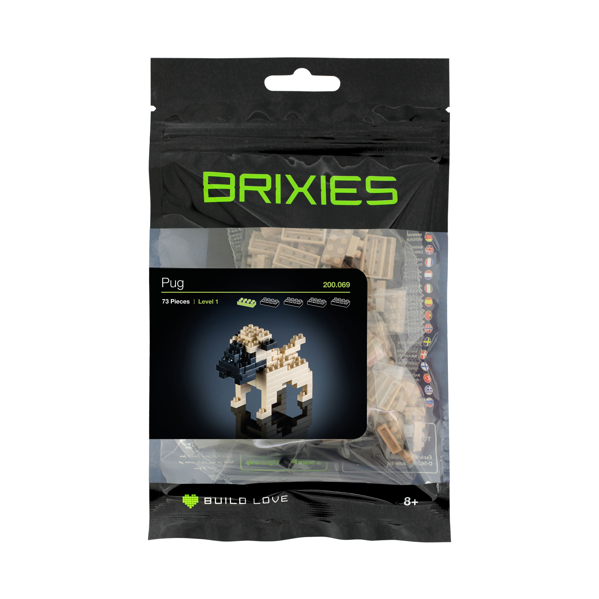 Laissez-vous inspirer par notre kit animalier « BRIXIES Pug » et explorez les parcs de chaque ville lors d'une longue promenade avec le meilleur ami de l'homme. Il n'y a aucune limite à votre imagination. Notre kit « BRIXIES Mops » garantit aux petits et aux grands inventeurs beaucoup de plaisir lors du montage.