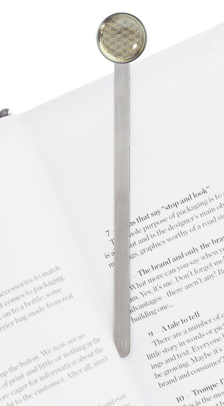 Magnífico Expositor de Cajas de Regalo conteniendo un llavero y un marcapáginas “Flor de la Vida”, de la marca METALMORPHOSE.