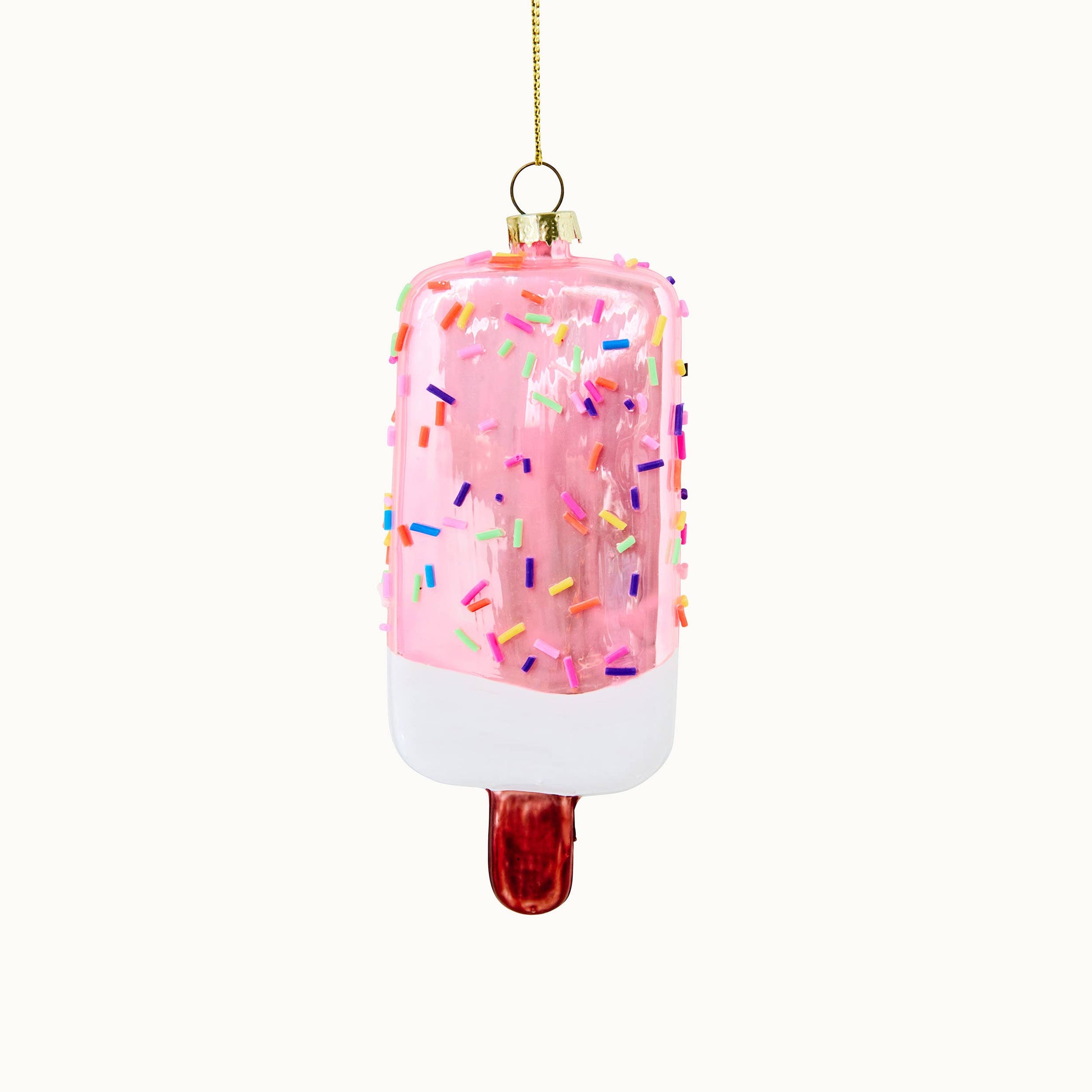 ¡Derrite corazones este invierno con esta decoración de vidrio soplado a mano en forma de cucurucho de helado rosa con chispas de colores ! 🎄✨