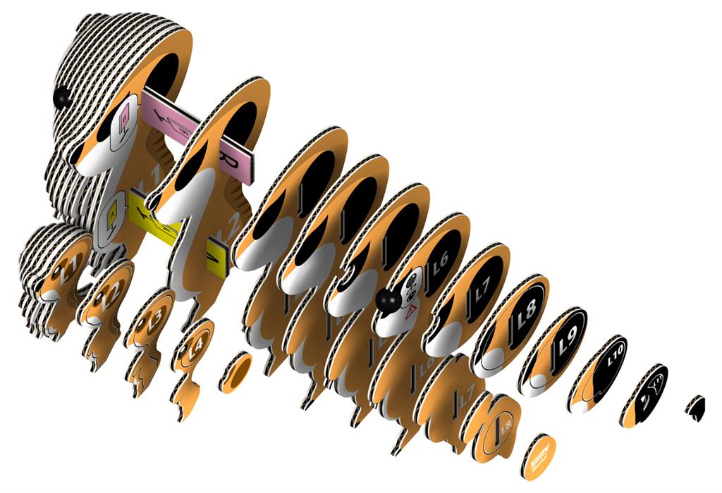 Nuestros productos cumplen al 100% con las normas internacionales de seguridad (EN71-1, 2, 3 y CPSIA). Un paquete EUGY contiene 7 tarjetas planas con piezas numeradas individualmente, listas para su montaje.