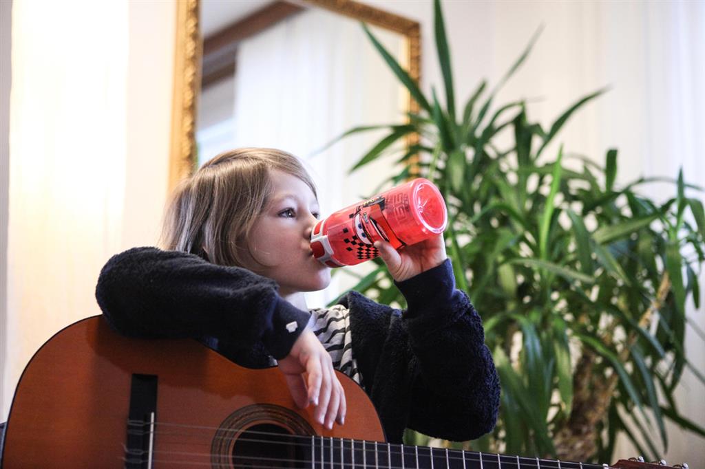 La botella infantil, duradera y reciclable, contiene gas, evita derrames, no contiene sustancias nocivas y es fácil de usar con una sola mano.