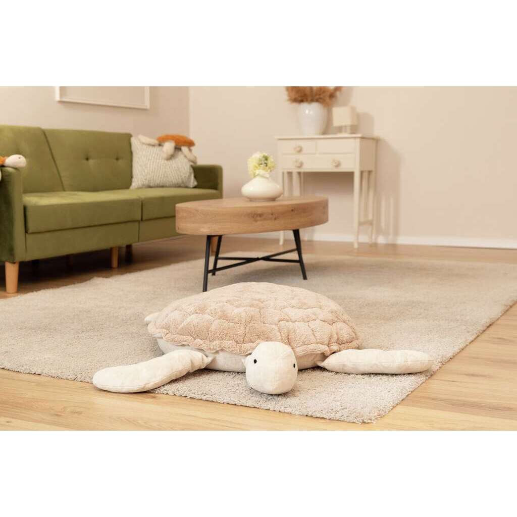 Nuestro gran amigo con forma de tortuga color arena de la colección "Animales Marinos" de Senger-Naturwelt está hecho a mano con algodón orgánico con certificación GOTS. Es increíblemente suave y versátil. Gracias a su cojín extraíble relleno de cáscaras de espelta orgánica, se transforma rápidamente en un cómodo puf. Perfecto para acurrucarse o como un elegante elemento decorativo en tu hogar. ¡Duradero, acogedor y simplemente encantador!