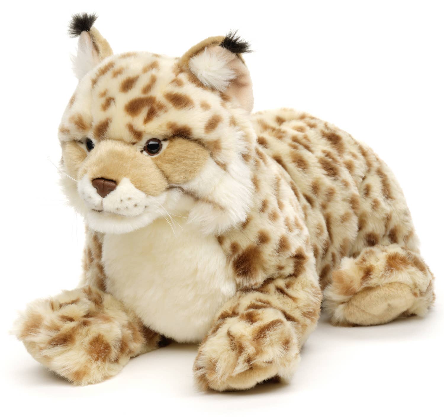 NOMBRE DEL PRODUCTO: Lince acostado (sin arnés) - 46 cm (largo) - Palabras clave: animal del bosque, gato salvaje, juguete de peluche, juguete de peluche