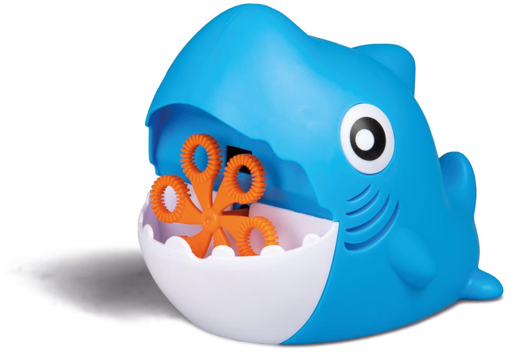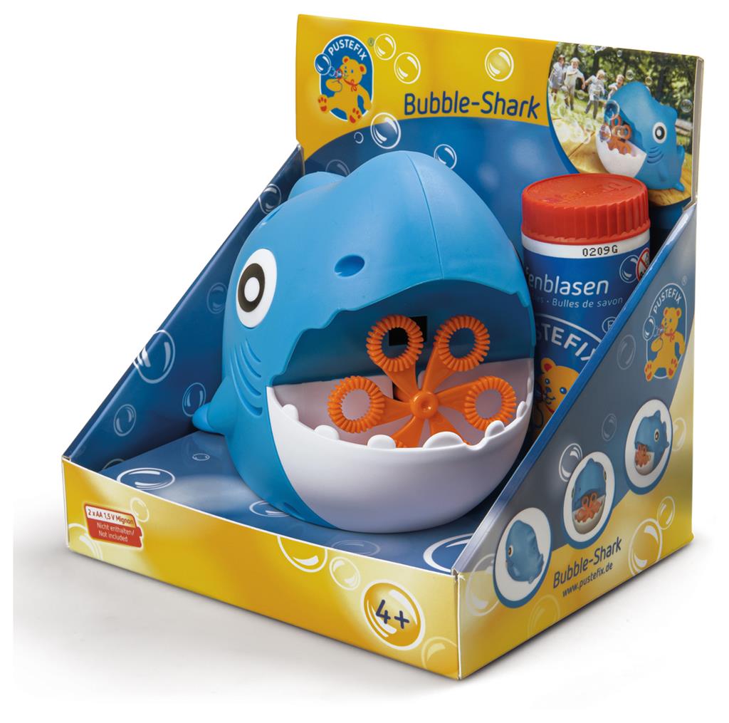 Pustefix: Máquina de burbujas de tiburón, con 70 ml de líquido Pustefix, funciona con pilas (3 pilas AA no incluidas), en caja abierta, para mayores de 4 años.