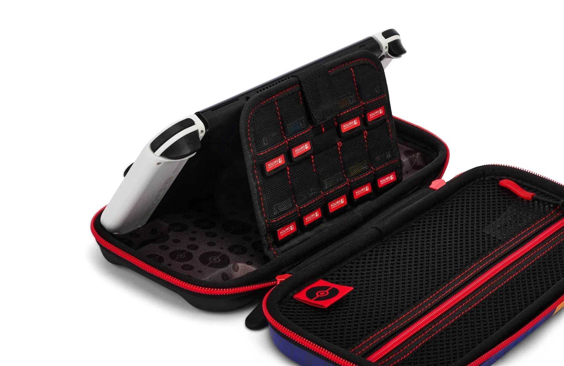- Interior moldeado con forro suave y red de almacenamiento Joy-Con que se adapta a cualquier consola