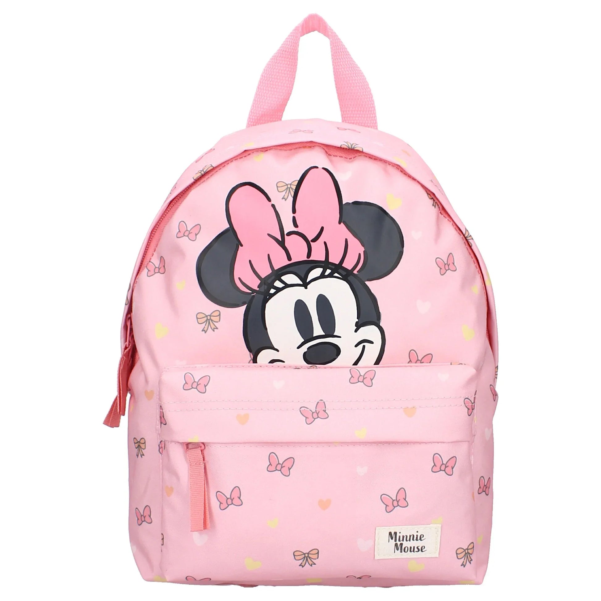 Con esta adorable mochila de Minnie Mouse, tu hijo estará listo para la escuela, la guardería o las salidas. Esta mochila de color rosa brillante presenta la cara feliz de Minnie. El bolso está adornado con un pequeño lazo y detalles en amarillo pastel. El compartimento principal tiene una cremallera doble que permite que tu hijo abra el bolso fácilmente. El bolsillo frontal es perfecto para artículos pequeños.