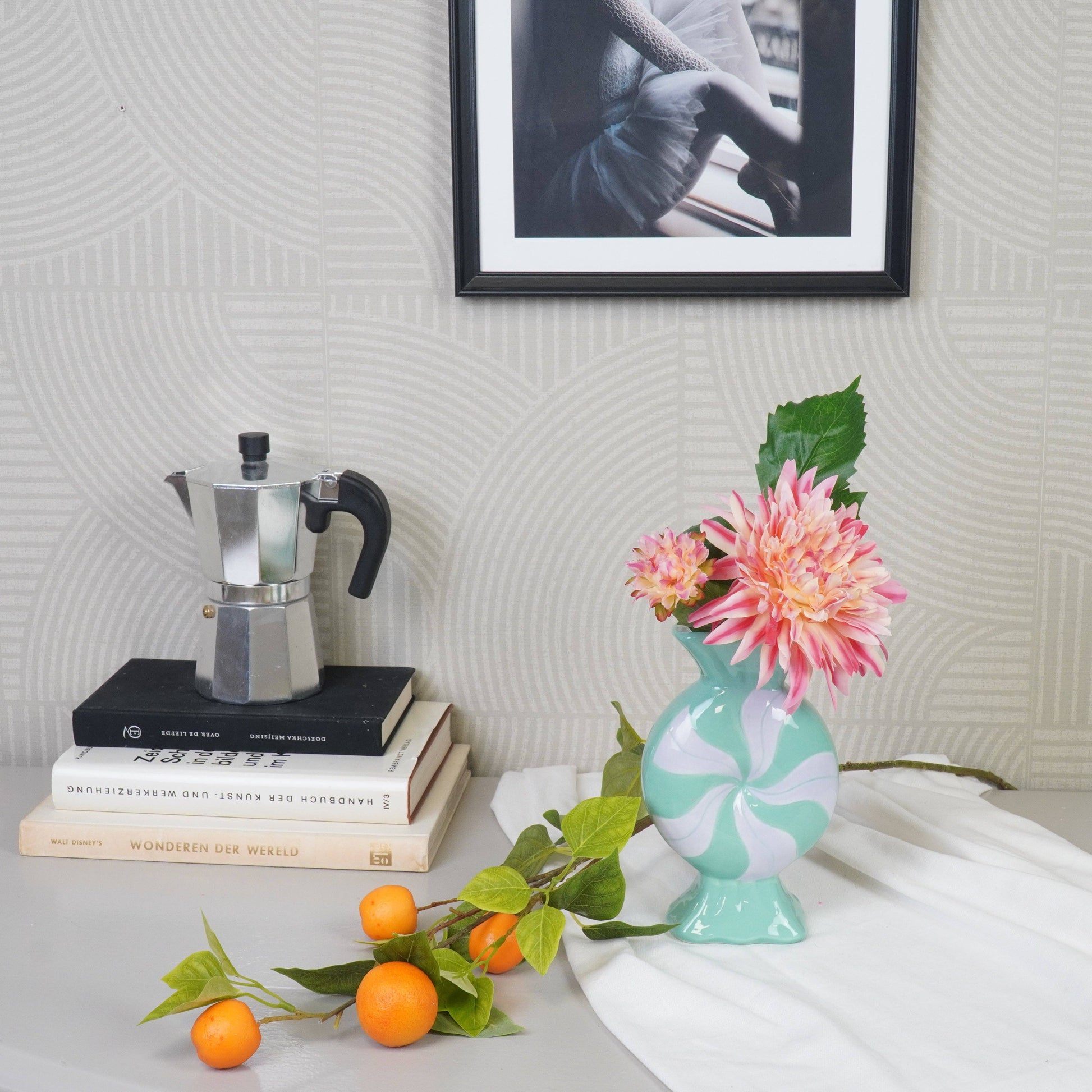 CANDYLICIOUS - ¿Buscas un jarrón único para complementar tu interior? ¡Este precioso jarrón de cerámica de Housevitamin es justo lo que necesitas! Con sus coloridas rayas en espiral y unas dimensiones de 12 x 6,5 x 20 cm, este jarrón color caramelo le da un toque alegre a tu hogar. Déjate inspirar por su dulce tono caramelo y dale a tus flores un lugar especial con este llamativo jarrón.