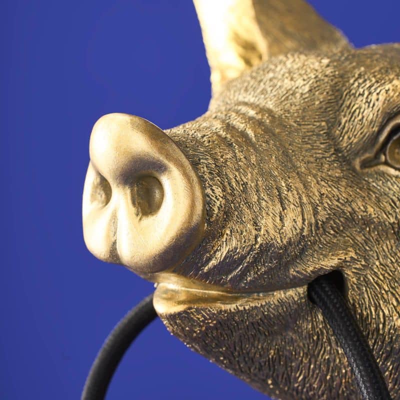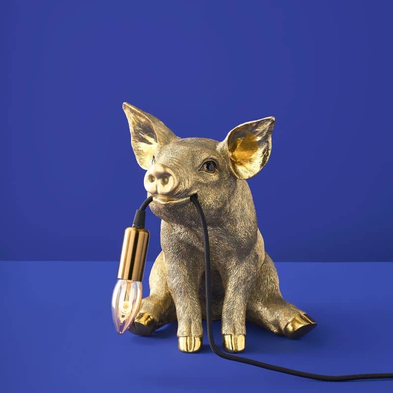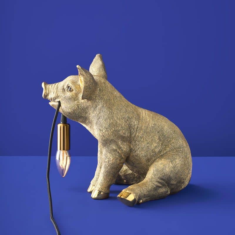Lampada da tavolo a forma di maiale dorato