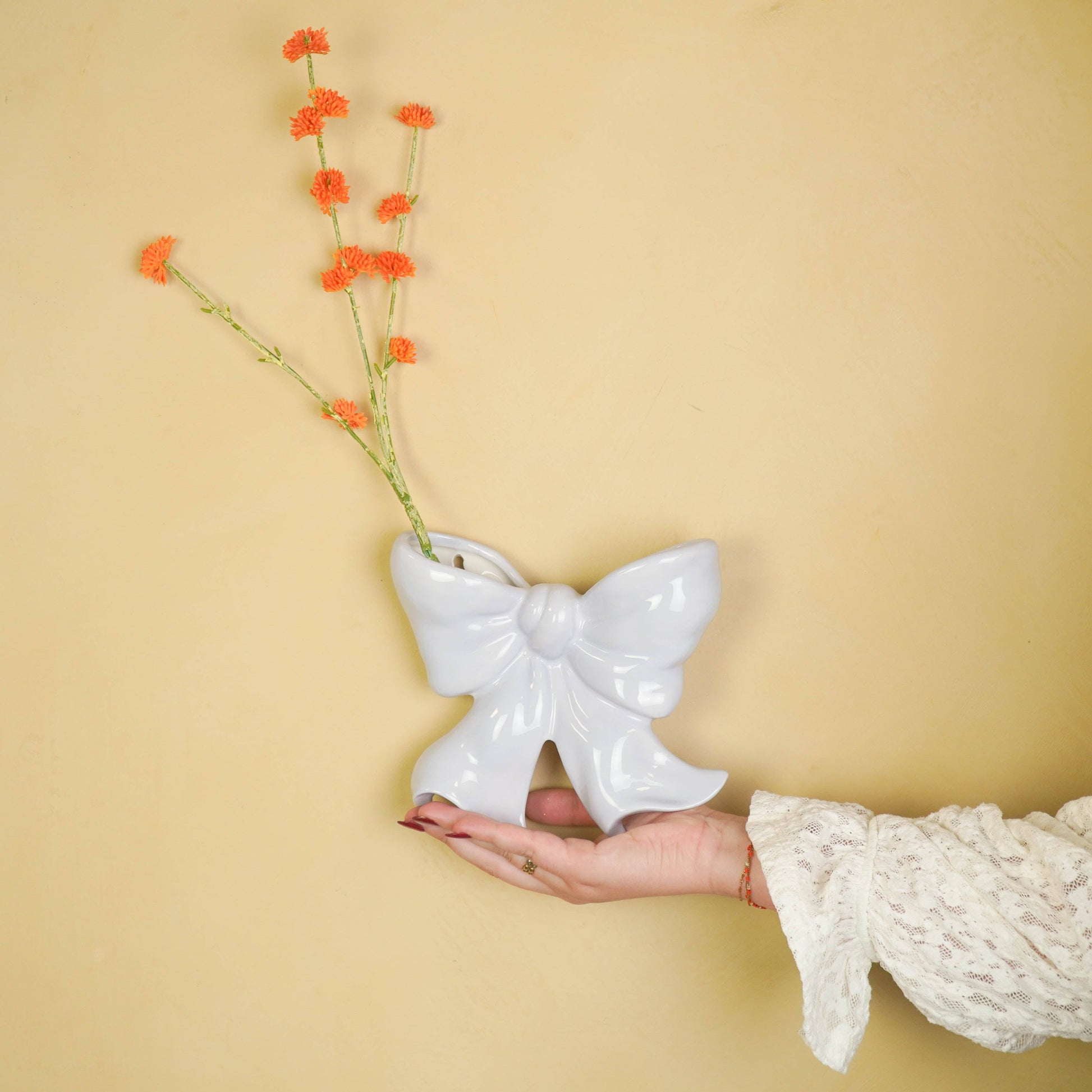 リボンで結んで!壁を飾る素敵なギフト!可愛らしいリボンの形をしたこのセラミック製壁掛け花瓶は、遊び心とエレガントさが絶妙に融合した逸品です。ユニークなリボンデザインと19×18.5×5.5cmのサイズで、壁を明るく華やかに彩る、まさに目を引く存在。リビング、キッチン、廊下など、どこに飾っても主役級の存在感を放ちます。
