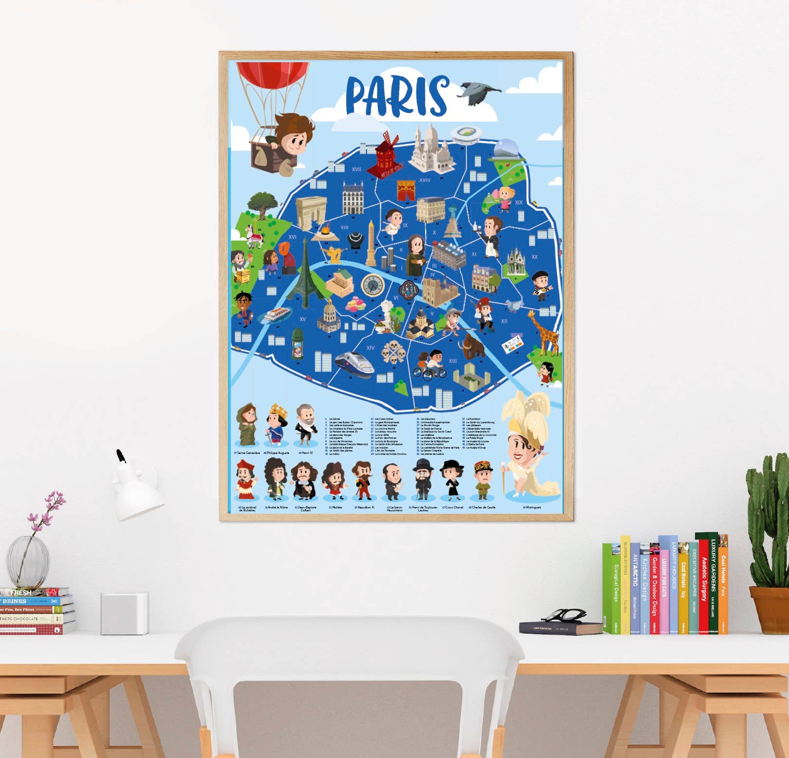 Een educatieve poster over Parijs in samenwerking met Quelle Histoire. Compleet met grote stickers. Poster (70 x 40 cm). Herpositioneerbare stickers. Gemaakt in Spanje op PEFC-gecertificeerd papier.