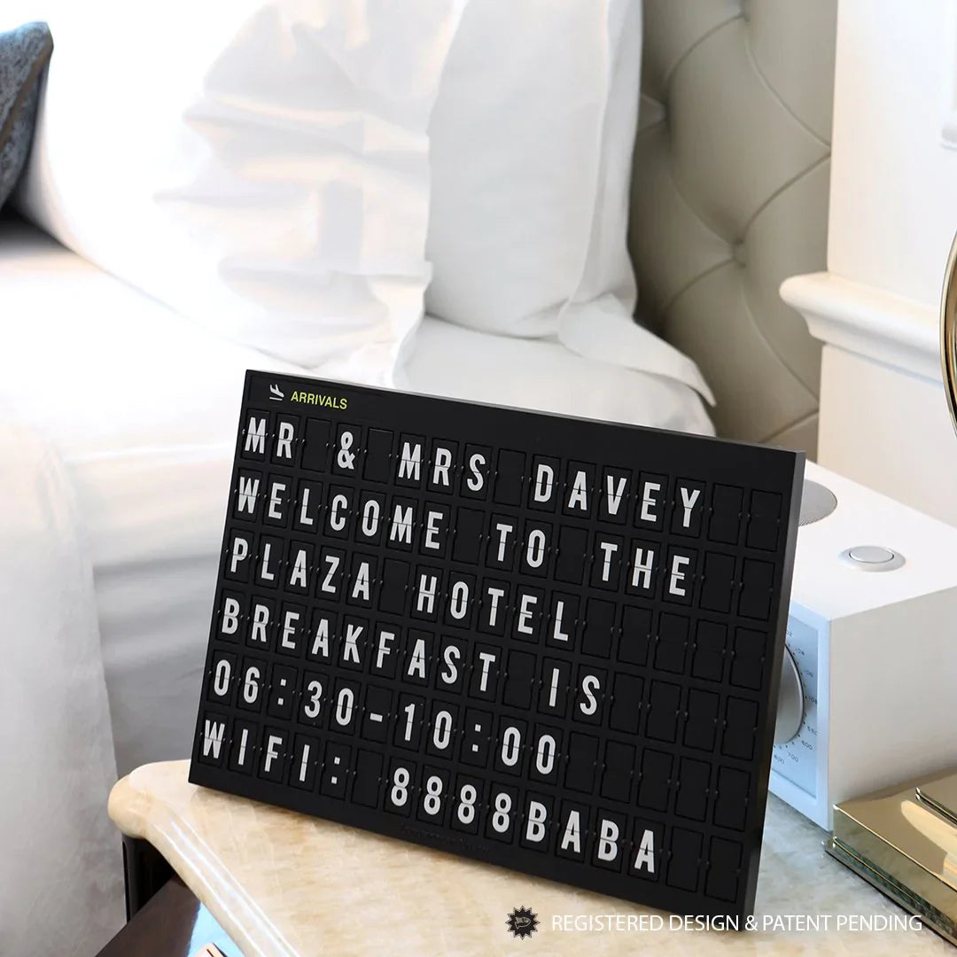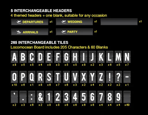 Personnalisez et affichez vos propres messages avec notre Locomocean Board, un babillard de style aéroport ! Convient à toutes les occasions, que vous organisiez une fête, que vous parcouriez le monde, que vous soyez attelé ou simplement à exposer à la maison !