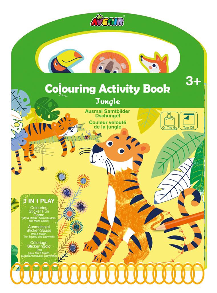Le livre d'activités Avenir avec les animaux de la jungle est un jouet créatif très amusant pour les enfants à partir de 3 ans. L'ensemble se compose d'un livre d'activités avec une poignée pratique et de six crayons de couleur.
