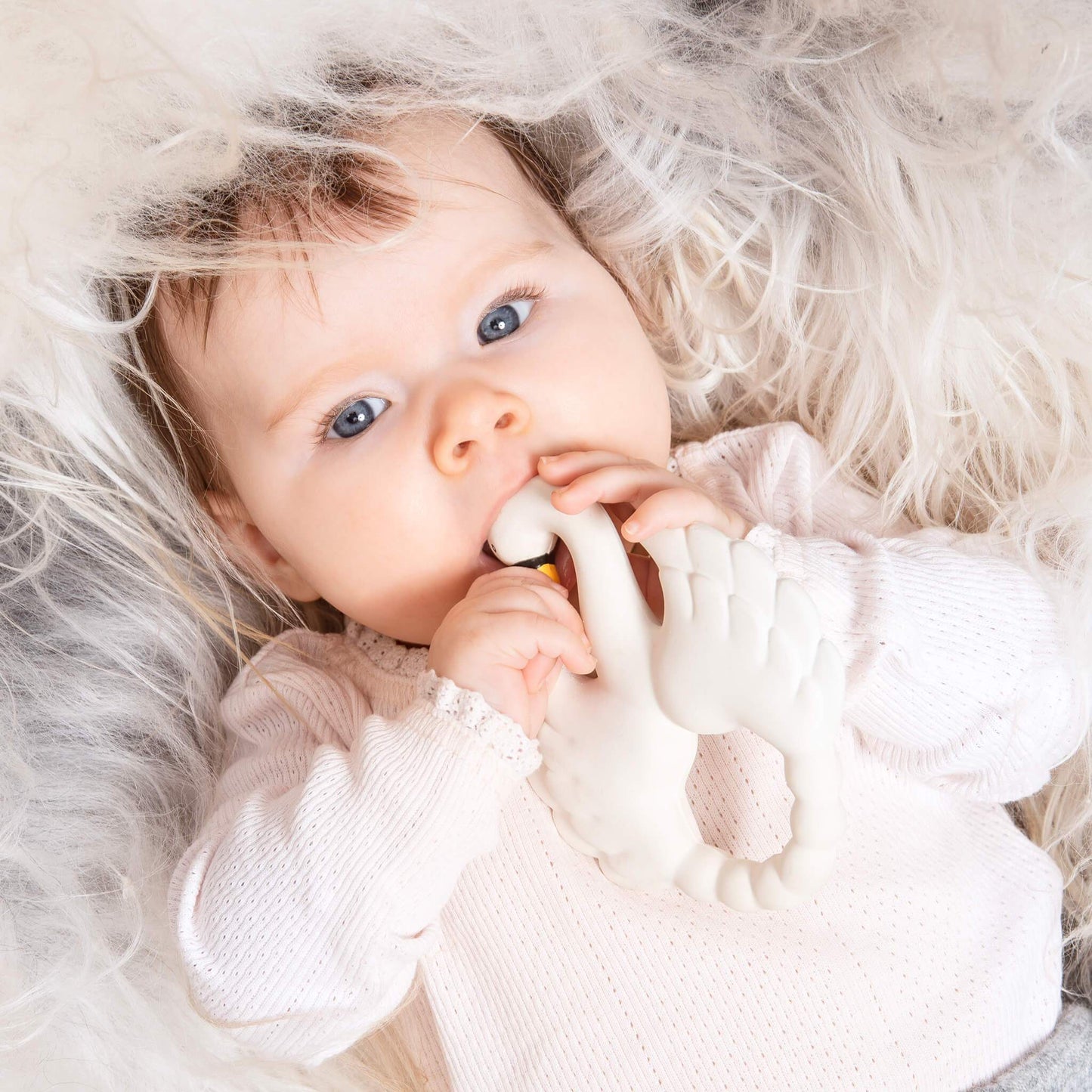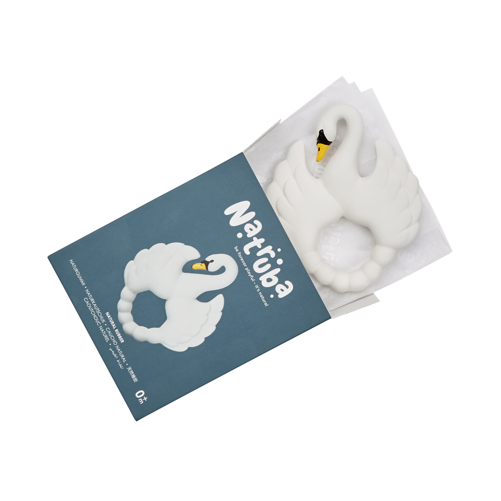 Façonné pour une prise en main facile pour les petites mains et un soulagement parfait pour les gencives douloureuses. Le cygne a différentes surfaces pour le jeu sensoriel et possède à la fois du caoutchouc naturel souple et dur pour satisfaire toutes les étapes des gencives douloureuses.