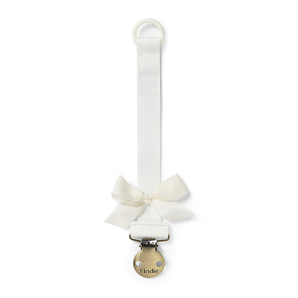 Notre attache-sucette est le seul moyen élégant de s’assurer que la tétine de bébé reste propre. Classique ou décalé, décontracté ou habillé, vous choisissez. Produit phare, il revient après un relooking et un changement de clip. L’anneau en silicone élastique peut s’attacher à presque n’importe quel type de tétines sur le marché et la pince en bois à tout type de vêtement. N’oubliez pas de choisir une tétine Elodie Détails assortie pour compléter la tenue !