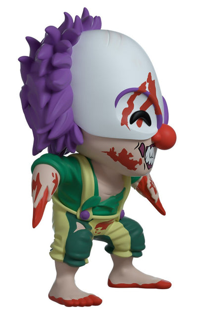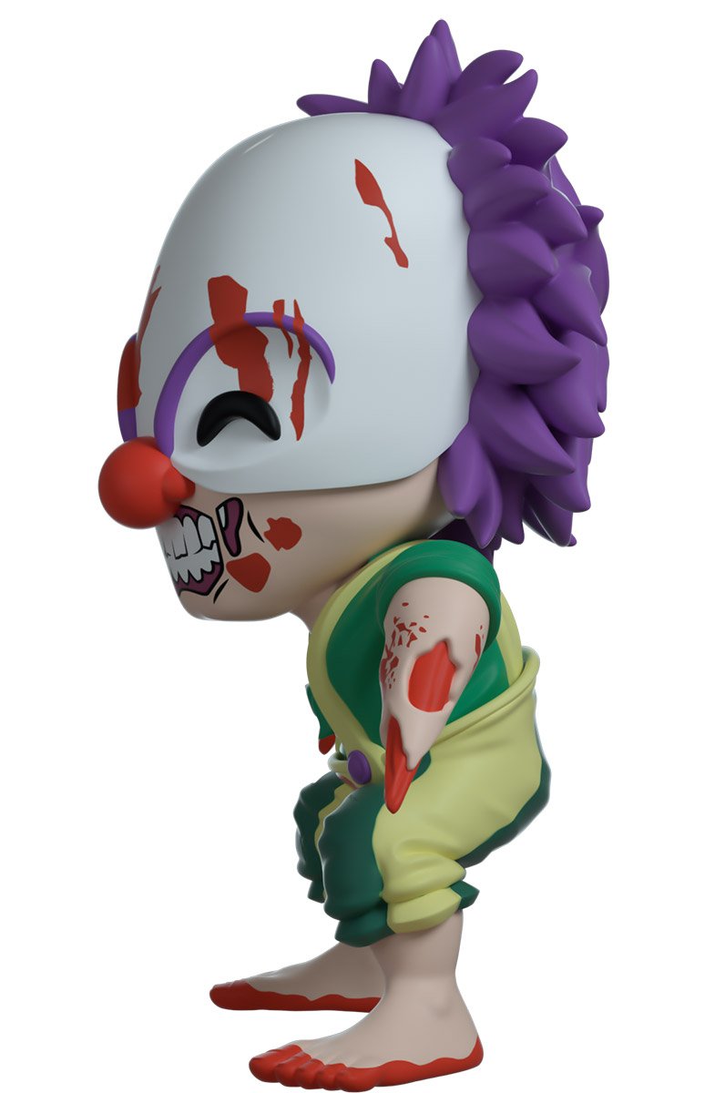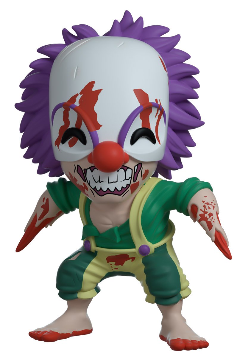 Vous pensez que je peux vous aider ? Butcho le clown découpe et massacre une figurine miniature ! Butcho mesure 10,9 cm et est vêtu d'une tenue de clown échevelée jaune et verte. Ses pieds sont nus, avec une couche de sang sur le bas. Son visage est partiellement recouvert d'un masque de clown blanc avec des cheveux violets dépassant de l'arrière du crâne. Son sourire charnu et denté scintille sous son gros nez rouge. Butcho se tient prêt avec ses bras en pointe de chair écartés. La boîte de présentation vitrée a été illustrée pour présenter un parc d'attractions au crépuscule avec des flaques de sang sur le sol. L'intérieur de la boîte présente le logo Dead Island 2 sur un fond de couleur dégradé. La pochette de protection montre un coucher de soleil depuis la vue au-dessus du panneau Hollywood, avec l'océan s'étendant au loin. Cet objet de collection est livré dans une pochette extérieure mate, gaufrée et protectrice et un protecteur en plastique de taille personnalisée pour une protection maximale pendant l'expédition.