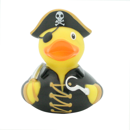 Le cauchemar de chaque capitaine dans la baignoire: un vrai pirate avec un cache-œil, un sabre et un crochet au lieu d'une main. Un marin courageux, cependant, reste calme et montre le pirate qui est le seigneur des eaux de la baignoire.