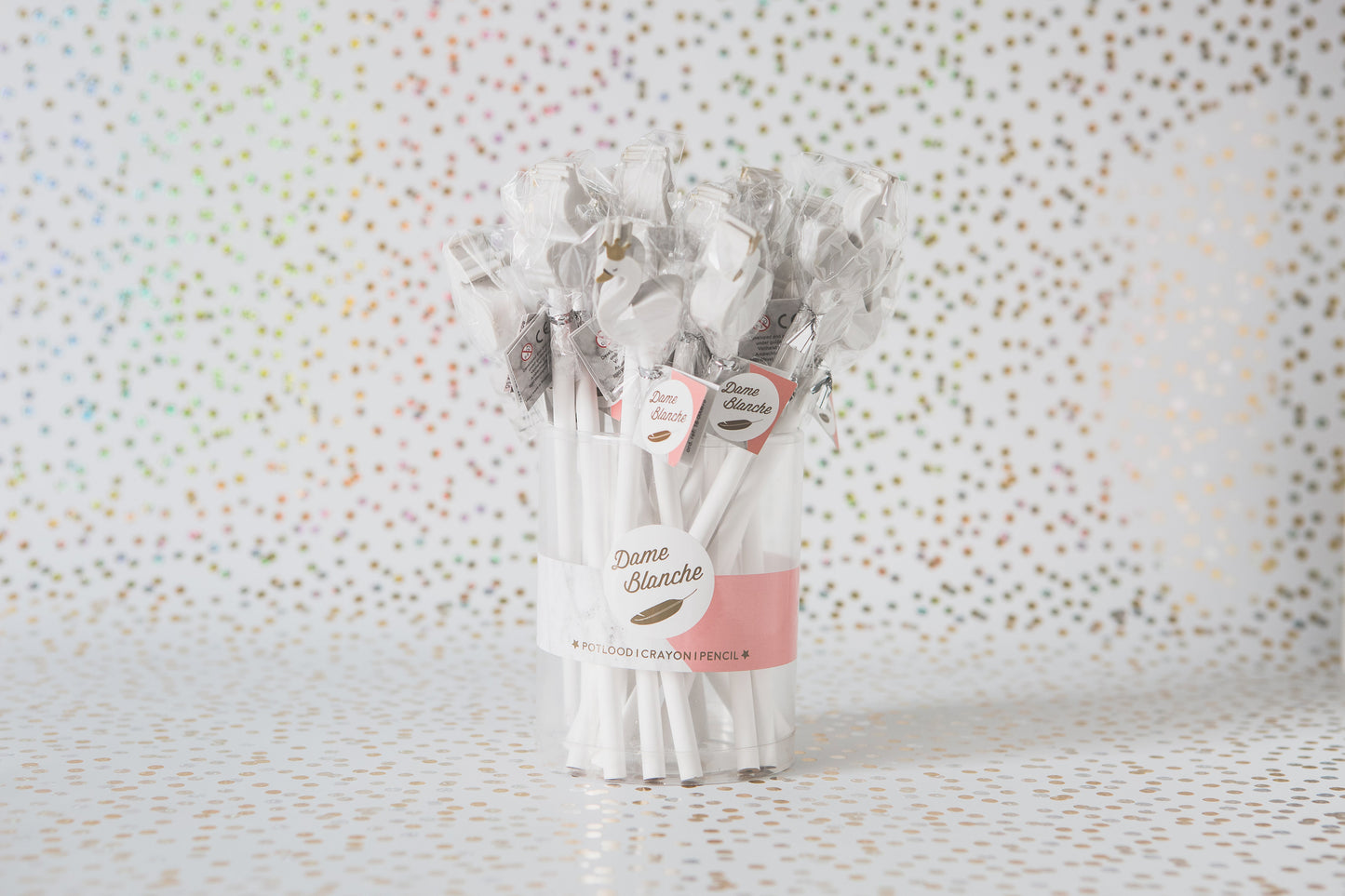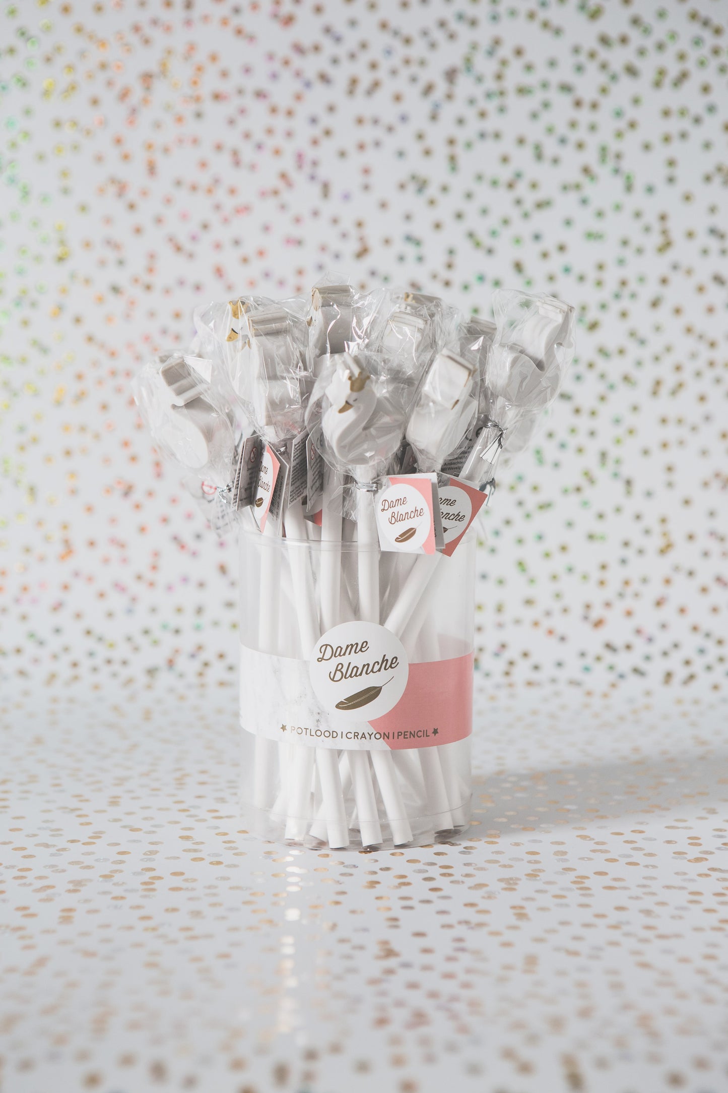 Ecrivez des lettres comme une grande Dame Blanche, avec gomme. Vendu par 24 dans un présentoir.