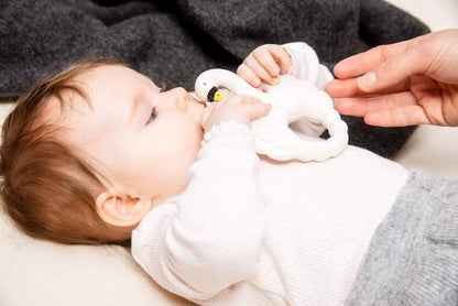 Imaginez ceci : votre bébé babille, et devant votre fenêtre, une famille de cygnes se promène dans l'océan. C'est le début de Natruba et comment l'oiseau national du Danemark - le cygne tuberculé, une créature magnifique et gracieuse, est maintenant un jouet étonnant pour le jeu sensoriel, la mastication et l'heure du bain. Ce jouet élégant est fabriqué à la main en caoutchouc naturel et soigneusement sculpté et peint à la main avec des pigments naturels.