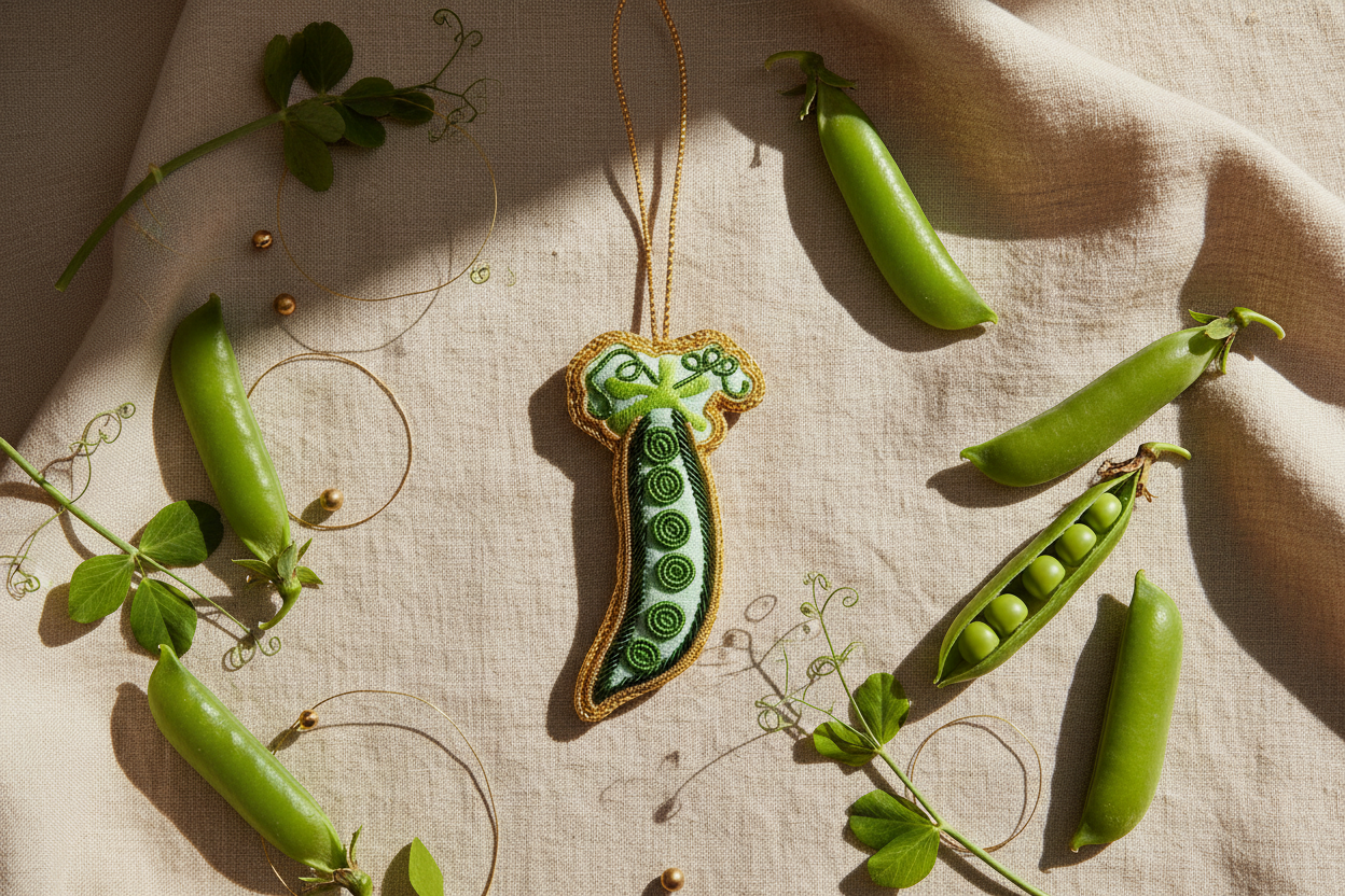 Veuillez garder les commandes de décorations de Noël séparées des lignes de cadeaux générales. Les commandes contenant des décorations de Noël et des lignes de cadeaux seront divisées et nous expédierons les lignes générales séparément. Fabriquée à la main avec la technique de broderie zari pour créer notre design de cosse de pois de Noël, cette décoration perlée est dans une belle palette de couleurs vert et or.