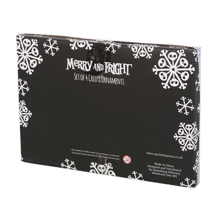 Apportez une touche délicieusement macabre à votre sapin avec cet ensemble de 4 décorations Creepmas inspirées des biscuits de Noël traditionnels, revisités façon Halloween gothique 🎄☠️.