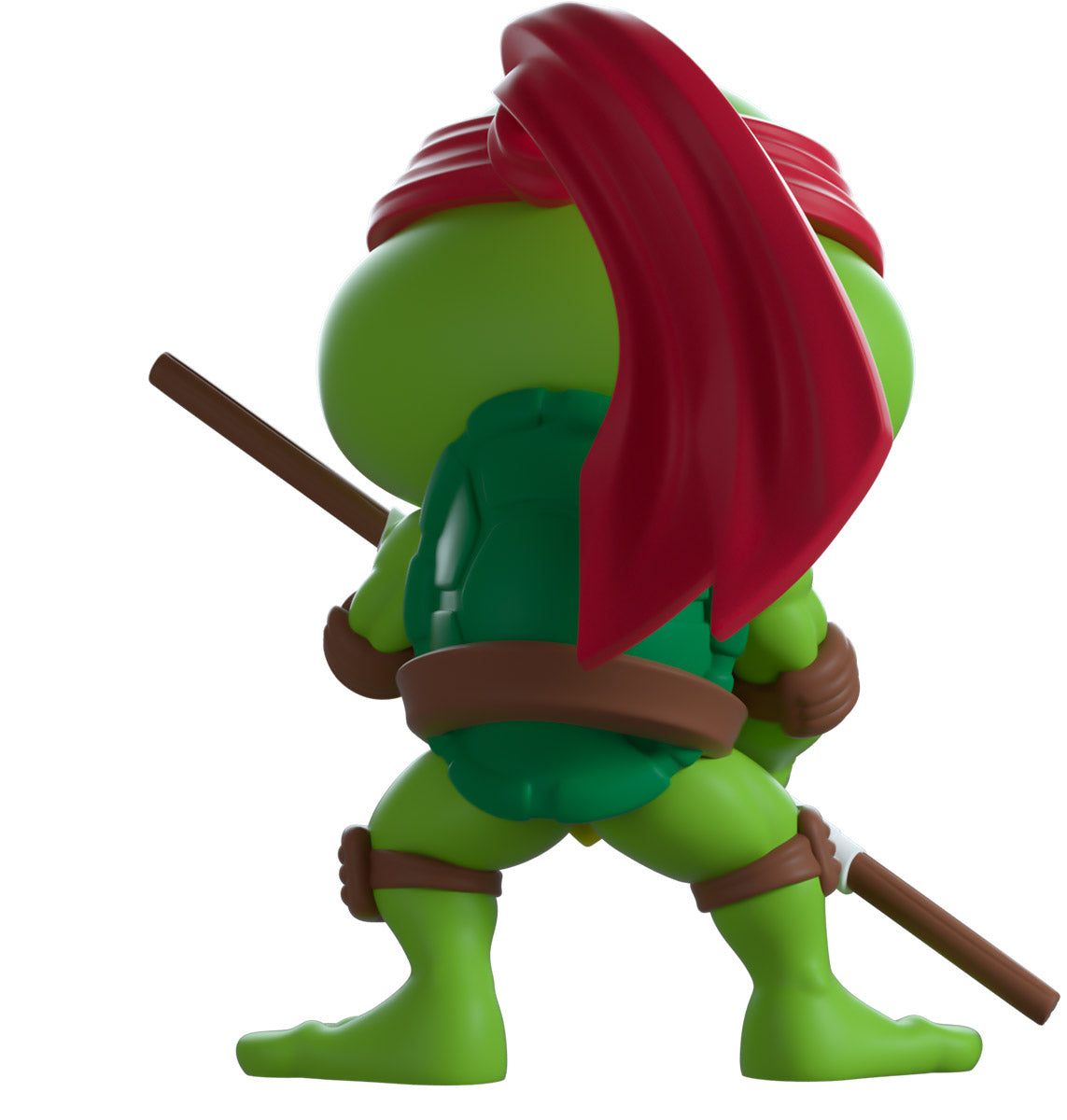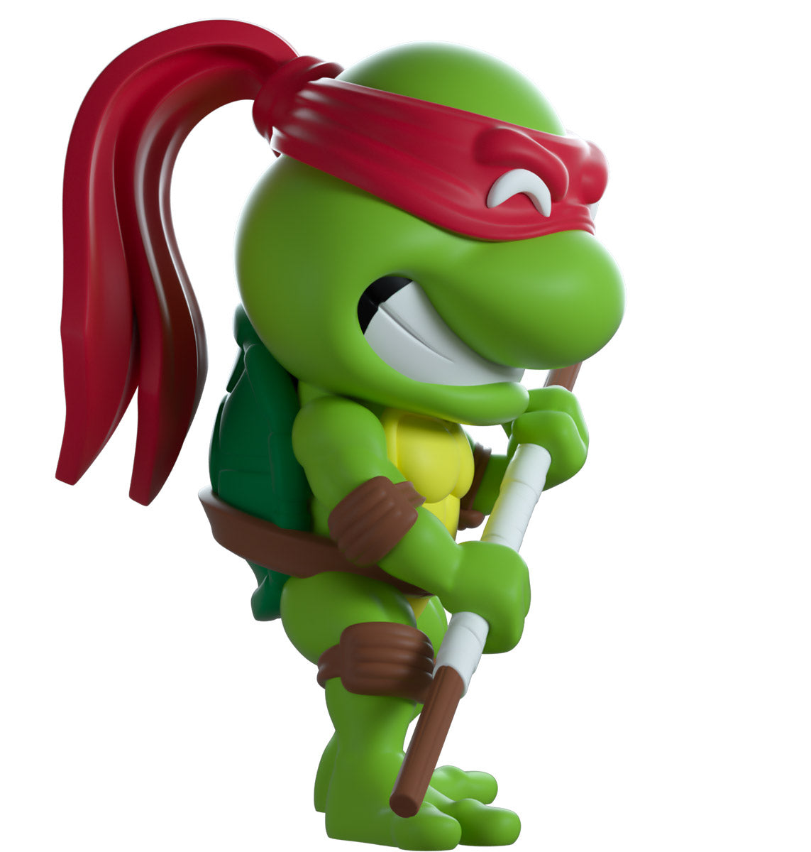 Donatello revient à Youtooz portant un masque rouge vif pour correspondre à ses frères dans ce retour classique à l'époque où les tortues ont commencé leur combat contre le mal ! Debout à 4,4 pouces de haut, regardant vers l'avant avec un regard déterminé et des dents dénudées redoutables traversant son large visage, il pose avec les deux mains tendues et serre un long bâton bō prêt à abattre son prochain assaillant. Avec une sangle épaisse bien ajustée autour de sa taille et une coque vert foncé, des protège-coudes et des genouillères de protection marron protègent ses articulations. L'extérieur de son emballage le voit se préparer à vaincre une horde d'ennemis redoutables. L'intérieur est la silhouette d'une ligne d'horizon de la ville se reflétant sur le lac à l'avant tandis que l'emballage protecteur le fait poser devant un panneau de bande dessinée, car sa silhouette peut être vue à travers la grande fenêtre transparente à l'avant. Cet objet de collection est livré dans un manchon extérieur mat, gaufré et protecteur et un protecteur en plastique de taille personnalisée pour une protection maximale pendant l'expédition.
