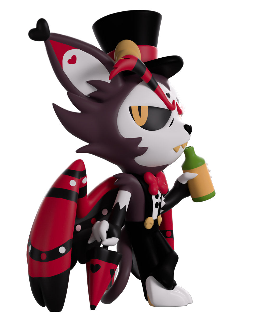 Vous avez besoin d'un compagnon de beuverie ? Eh bien, Husk a atterri chez Youtooz pour être le meilleur ami imaginable pendant que vous buvez votre chagrin ! D'une taille de 11,7 cm, il tient une bouteille dans sa main gauche et lance un regard mécontent sur le côté avec des yeux jaune pâle sous de longs sourcils rayés, ses oreilles pointues se terminent par de petits cœurs noirs et sont assises de chaque côté d'un haut-de-forme noir. Avec ses ailes rouges, noires et blanches déployées alors qu'il s'appuie sur un parapluie plié, il porte un nœud papillon rouge et des bretelles tandis qu'une longue queue en éventail s'enroule autour de son dos. L'extérieur de son emballage est recouvert d'une bordure murale dorée ornée sur un fond rouge foncé, tandis que l'intérieur le voit debout à son bar en train de prendre une énorme gorgée d'une bouteille. La pochette de protection montre ensuite la silhouette de la ville avec une lumière rouge foncé qui brille depuis les bâtiments tandis que sa silhouette peut être vue à travers la grande fenêtre transparente à l'avant de l'emballage. Cet objet de collection est livré dans une pochette extérieure mate, gaufrée et protectrice et dans un protecteur en plastique de taille personnalisée pour une protection maximale pendant l'expédition.