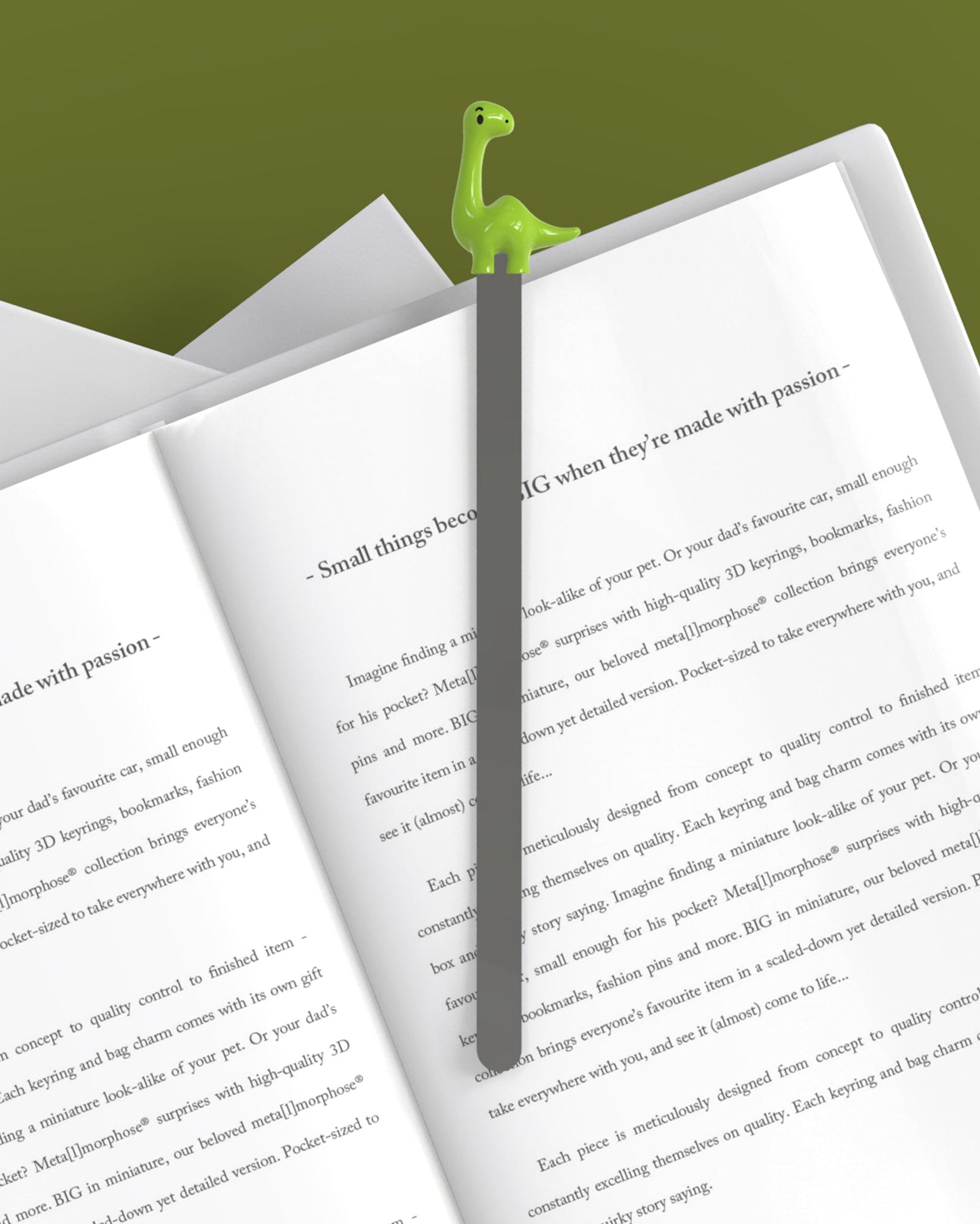 Dinosaure diplodocus marque page en métal vert Metalmorphose