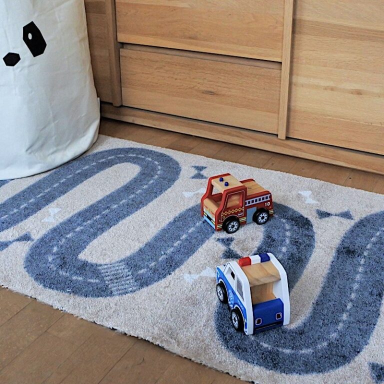 Tapis doux pour une chambre d’enfant, à la fois pour jouer et pour marcher pieds nus. Un effet déco garanti.
