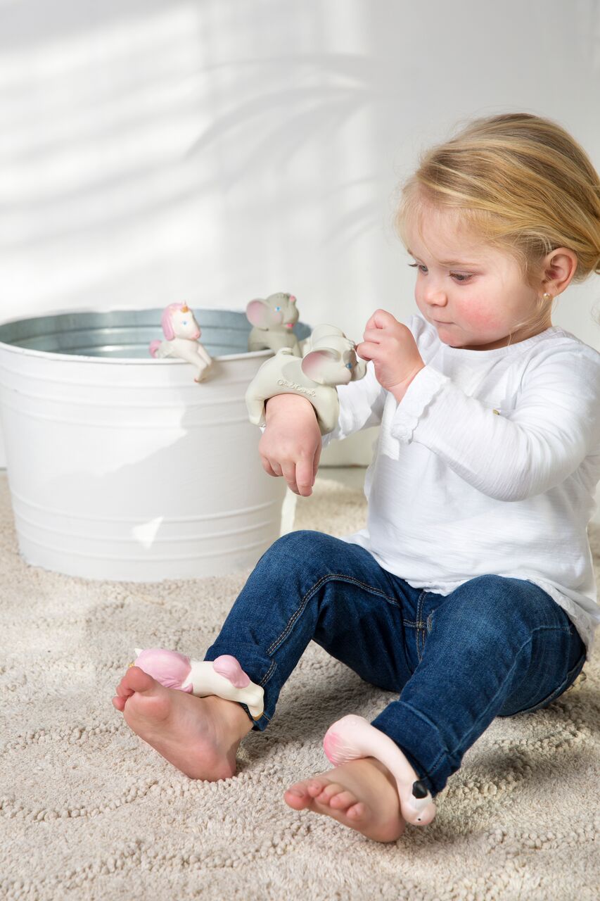 Nelly l’éléphant est un anneau de dentition en forme d'animal qui est parfait pour être utilisé comme jouet de dentition, jouet pour le bain et jeu sensoriel. Il est peint avec des pigments naturels, 100% sans danger pour les enfants ! Prêt à être porté aux poignets des bébés et des enfants lors de chacune de leurs aventures !