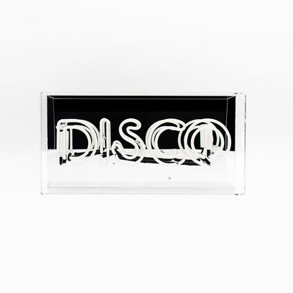 L'enseigne au néon en verre 'Disco' apporte une lueur authentique et fraîche à votre maison. Style rétro ludique. C'est une pièce d'éclairage incontournable qui fait également un cadeau fabuleux.