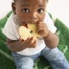 Pepita la pomme : c’est bien connu, manger des pommes est bon pour la santé ! Cette tranche de pomme à l’aspect tellement réaliste enchantera les bébés qui ne peuvent pas encore croquer de vraies.
