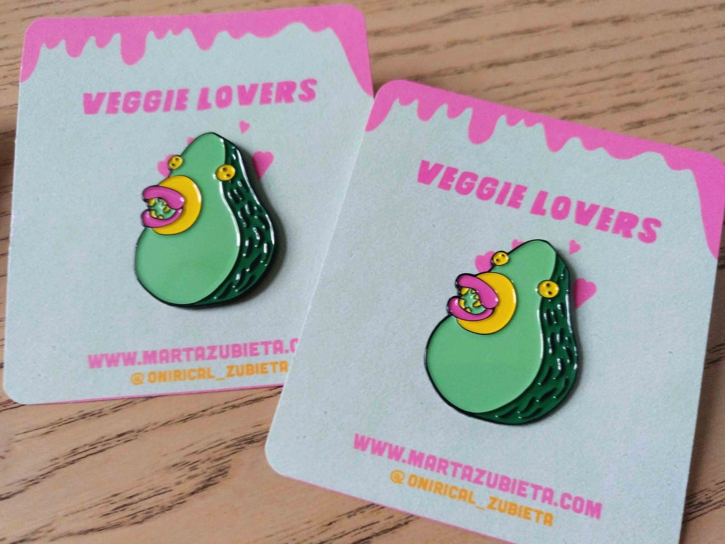 Procurez-vous ou votre bien-aimé cette broche en émail avec avocat, de The veggie lovers. Ils savent qu'ils sont bizarres mais ils croient en une chose qui s'appelle l'amour !