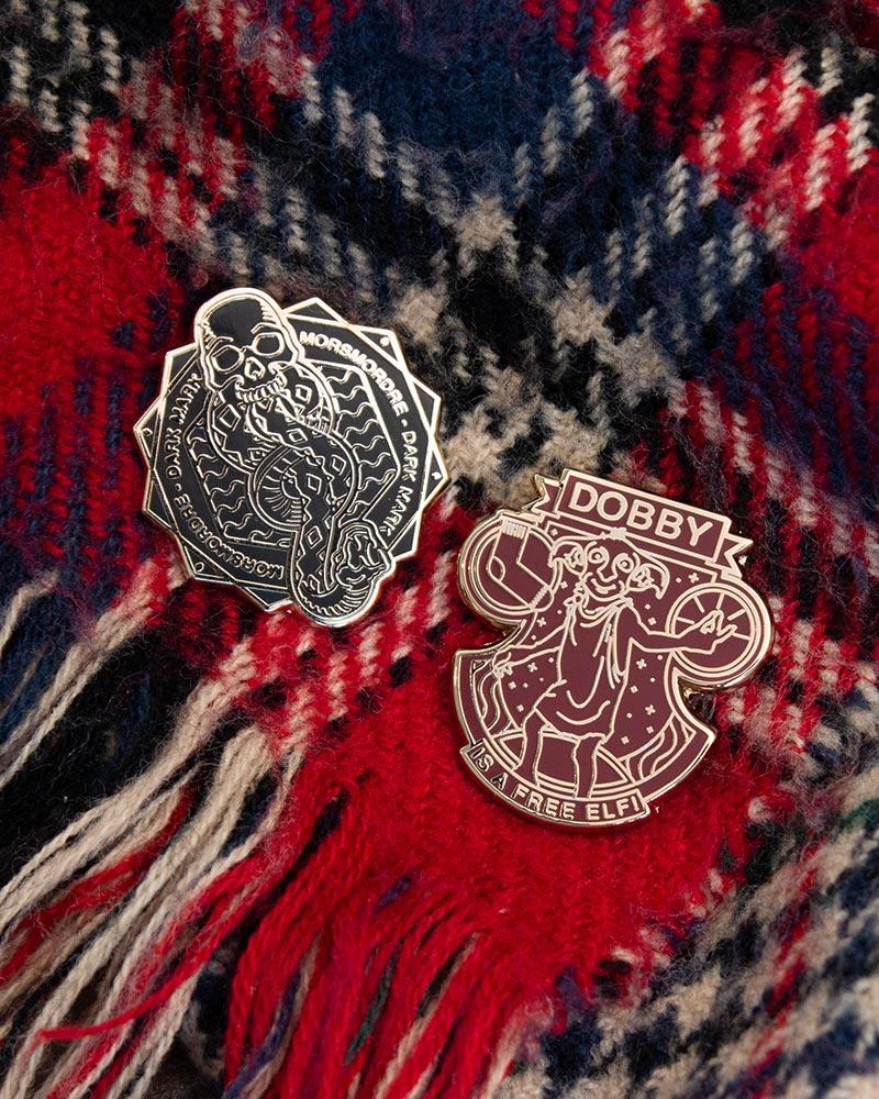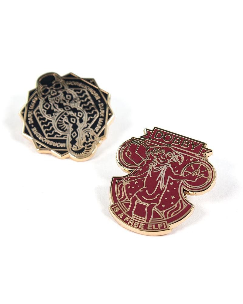 Faites peur dans le cœur de tout sorcier ou sorcière en herbe en ayant votre propre marque des ténèbres: le symbole de votre loyauté envers le Seigneur des Ténèbres Voldemort. Sinon, il serait peut-être préférable de vous tenir compagnie avec le sympathique elfe de maison Dobby, qui ne manquera pas de répondre à tous vos besoins. Ces articles originaux sont parfaits pour embellir n'importe quel accessoire, manteau ou sac, ou même simplement garder comme objet de collection.