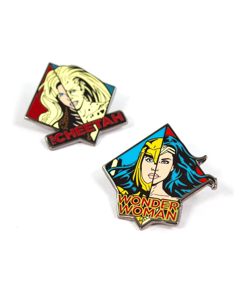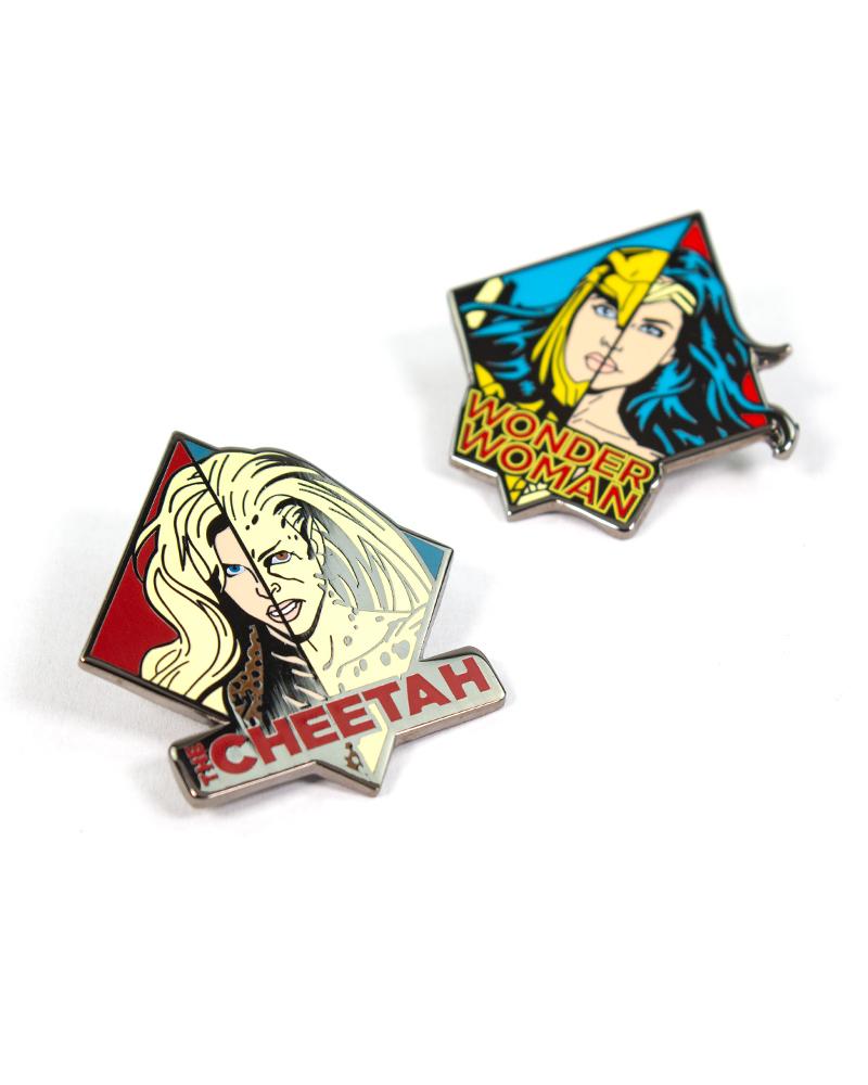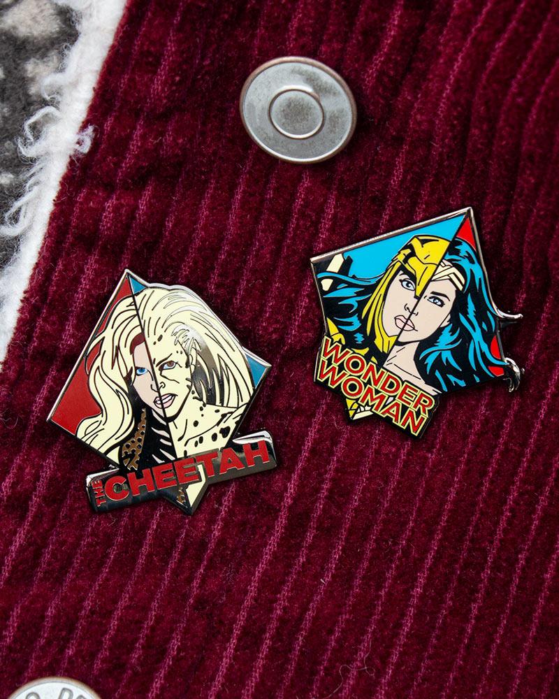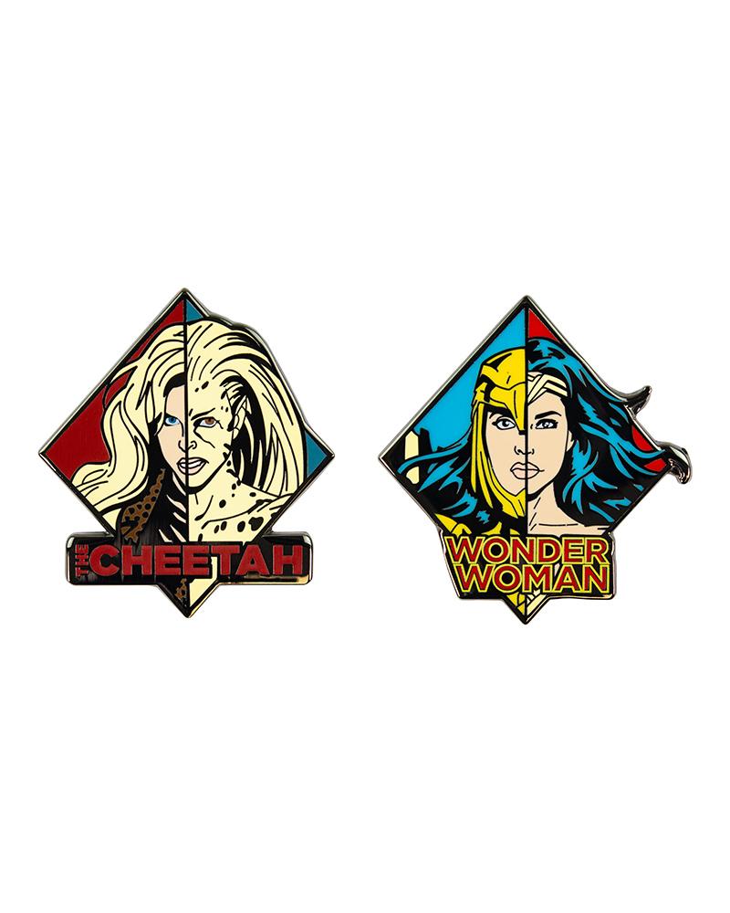 Wonder Woman est prête à mener le combat contre son archnémèse, Cheetah. Vous pouvez maintenant obtenir les deux personnages sous forme de pins en émail de qualité supérieure, parfaites pour les attacher à votre sac ou à votre cape.