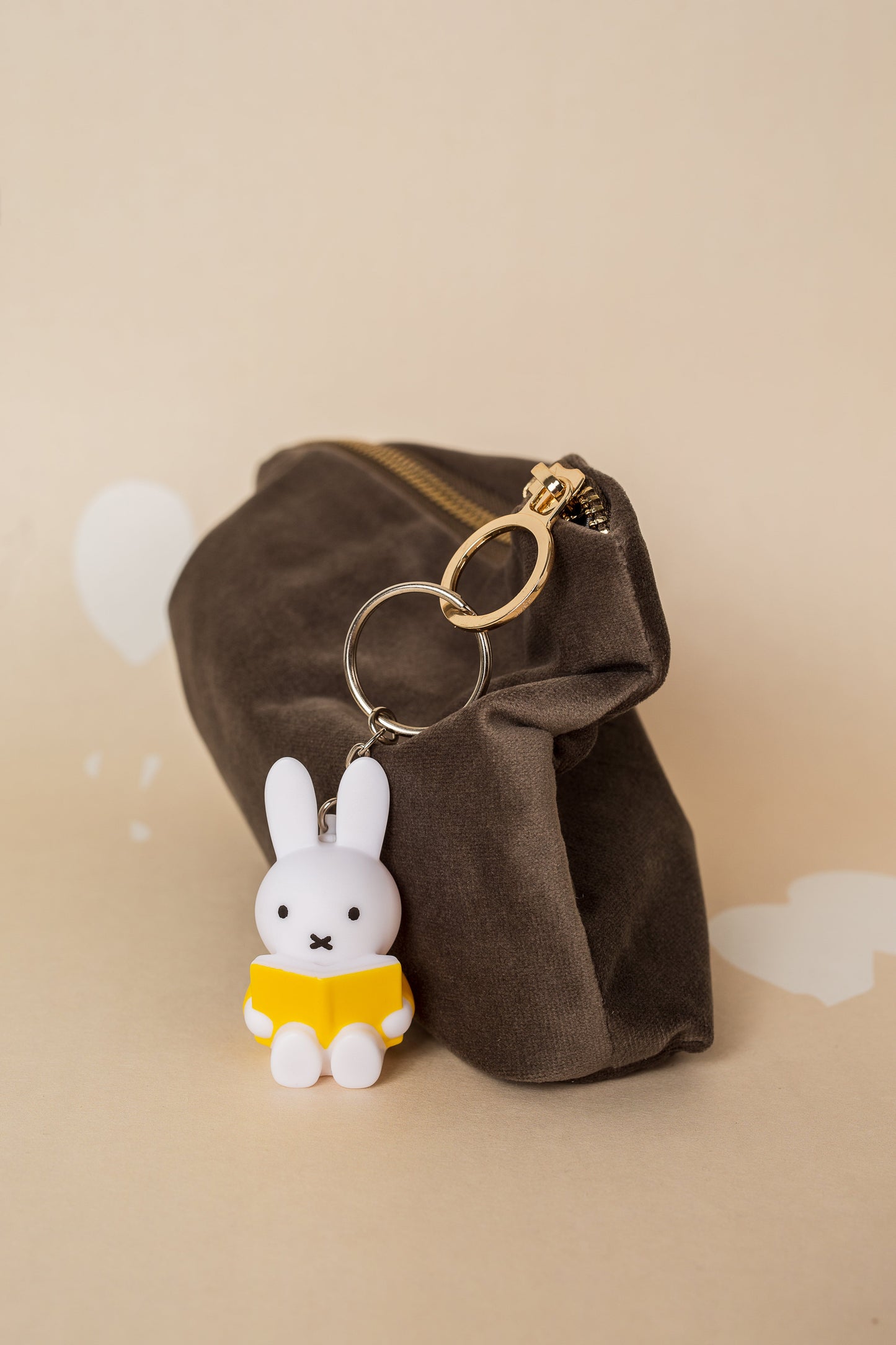 Un porte-clé avec Miffy qui lit son livre.