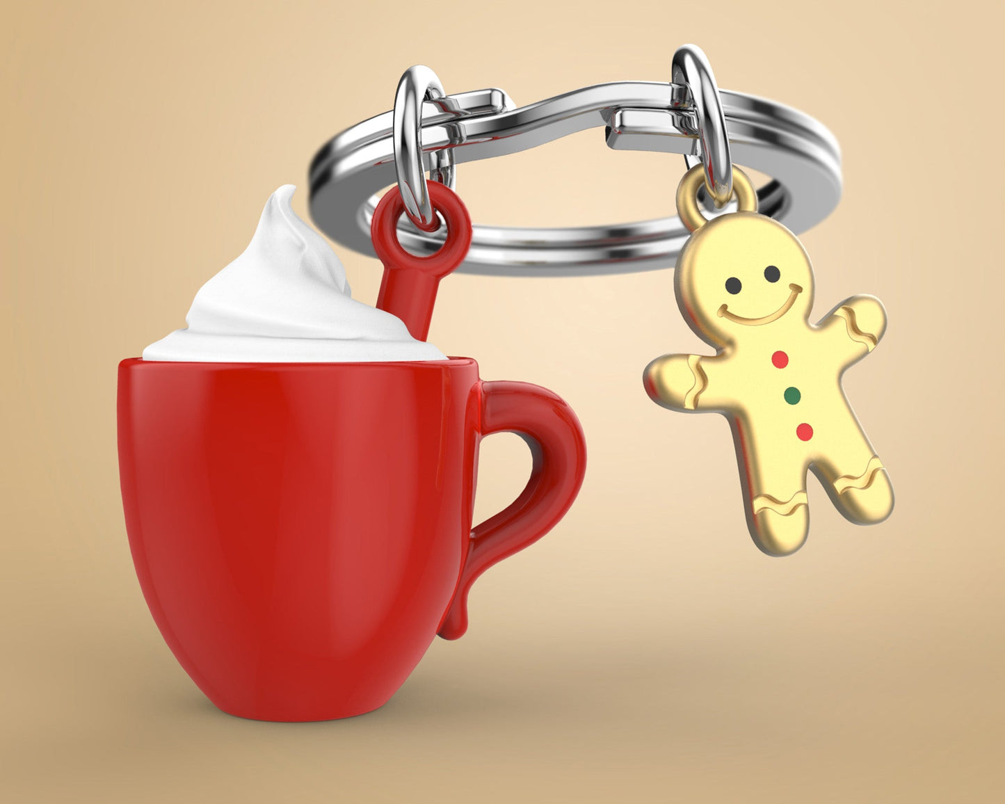 Porte-clefs boisson chaude avec bonhomme de pain d'épices Metalmorphose