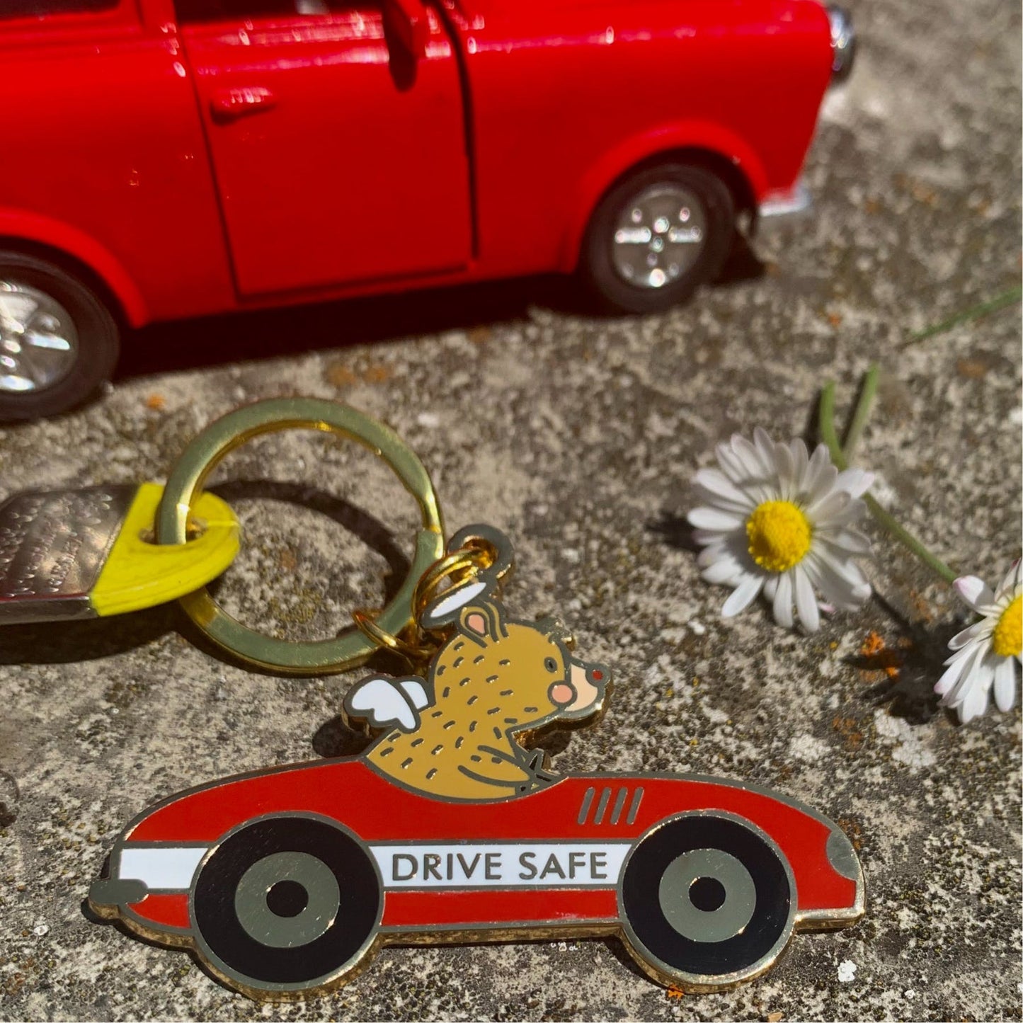 Conduisez prudemment, j'ai besoin de vous ici avec moi. Le porte-clés de voiture Drive Safe est aussi un porte-bonheur et un ange gardien à la fois. Que ce soit pour un conducteur novice, un partenaire ou un bon ami, cette remorque est une idée cadeau spéciale avec un message d'amour. Le porte-clés a été conçu pour les hommes et les femmes et montre un ours dans la voiture avec l'inscription « Drive Safe ».