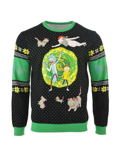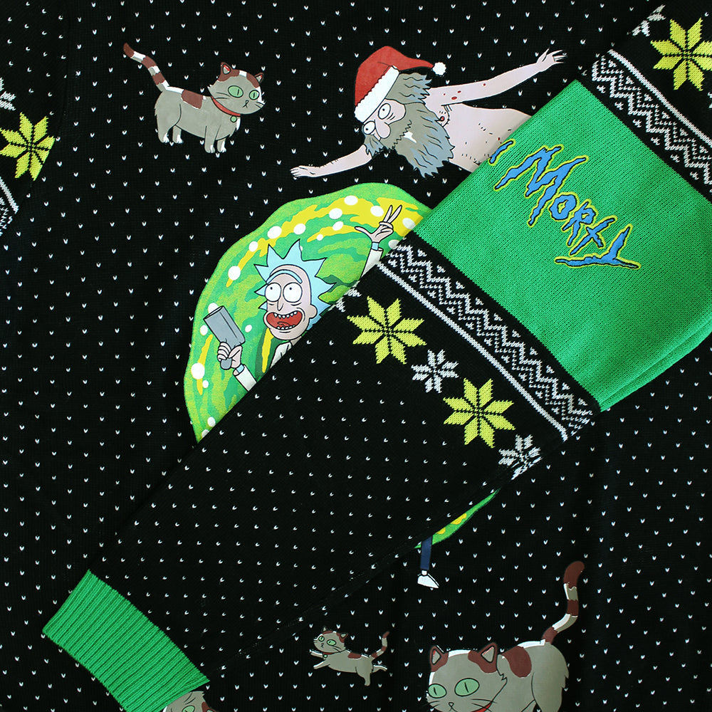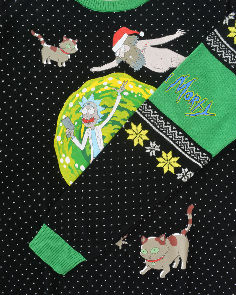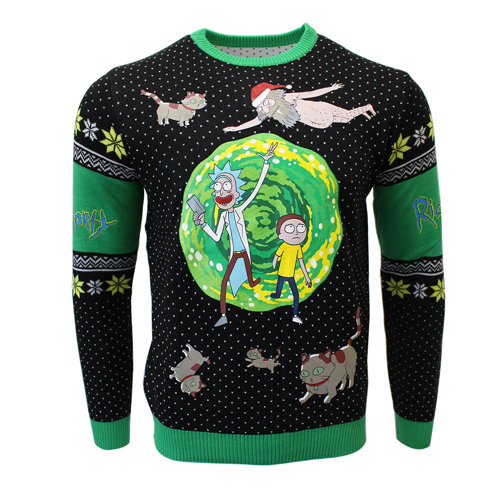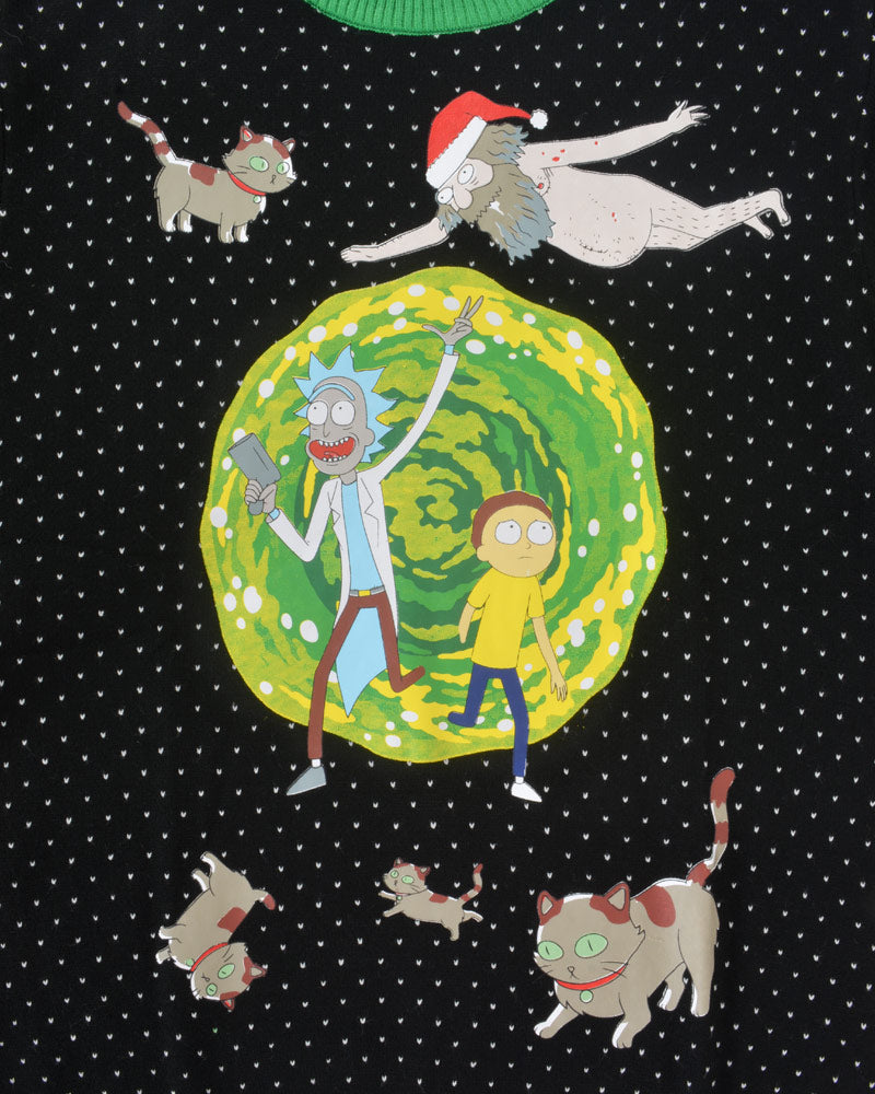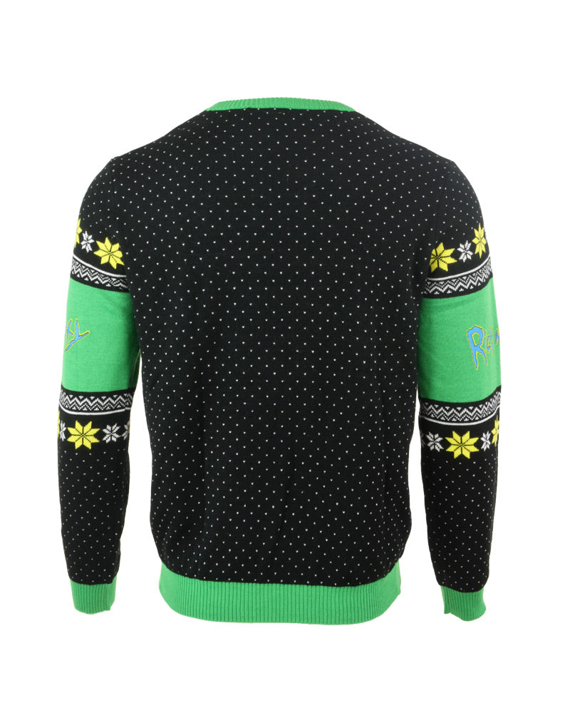 Enveloppez-vous au chaud ce Noël avec ce pull officiel Rick et Morty Xmas! Un pull entièrement tricoté avec des effets d'impression en gel, vous pouvez rester au chaud et montrer votre amour pour tout ce qui concerne Rick & Morty avec ce pull de haute qualité, mettant en vedette Rick, Morty et même un sans-abri flottant habillé en Père Noël! Que demander de plus - un pin bonus gratuit? Oh, oh oh!